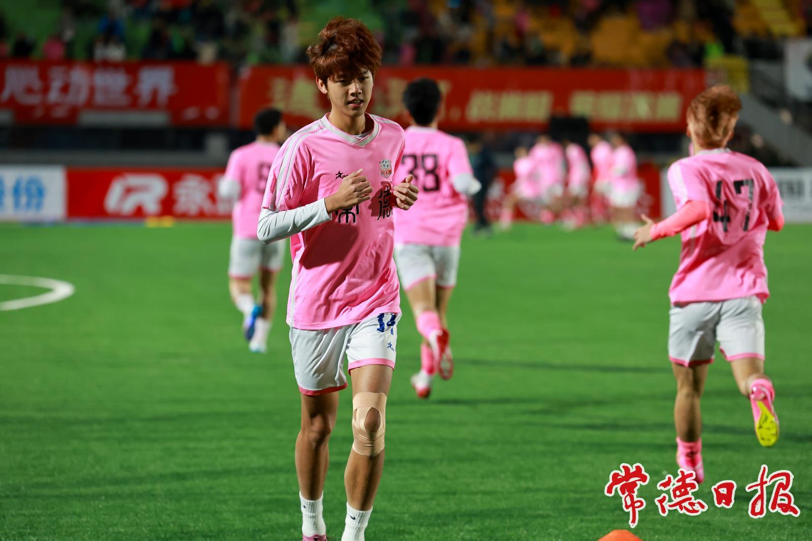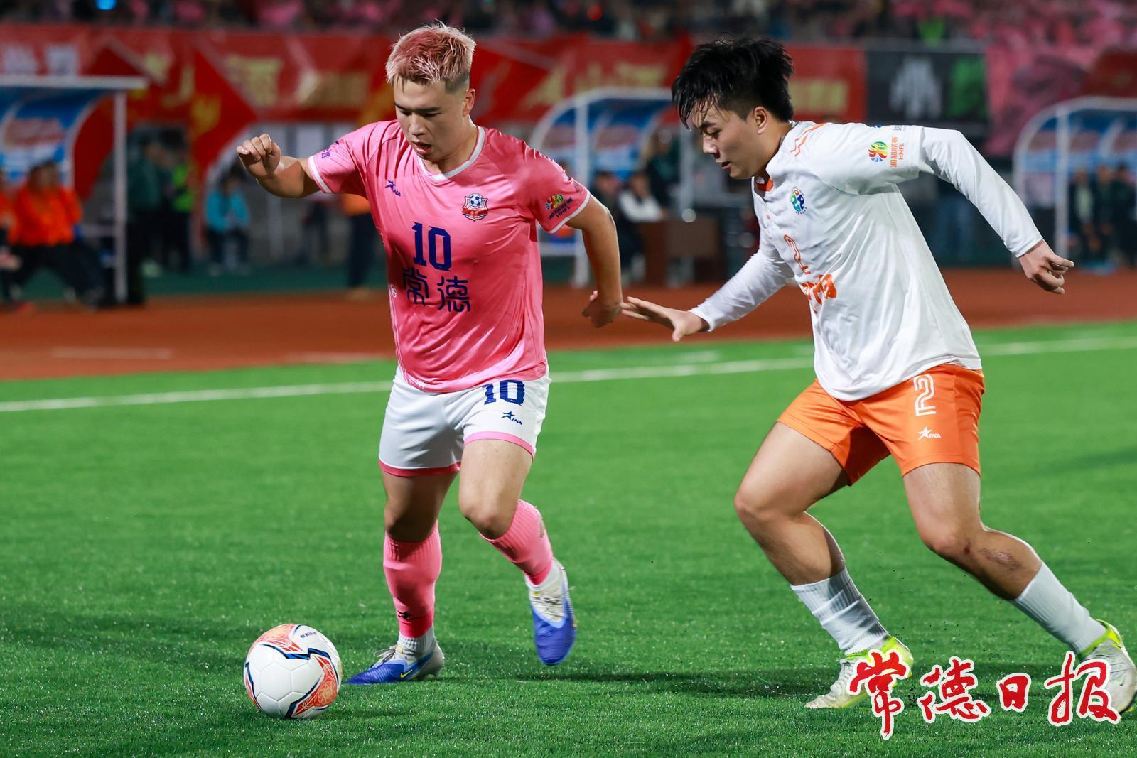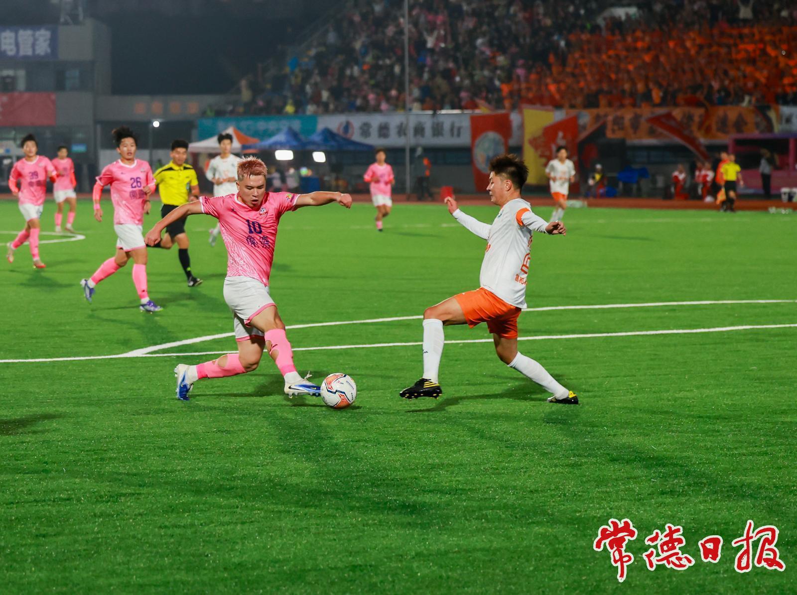 常德10号队员赵文荻在绿茵场上激烈拼抢。