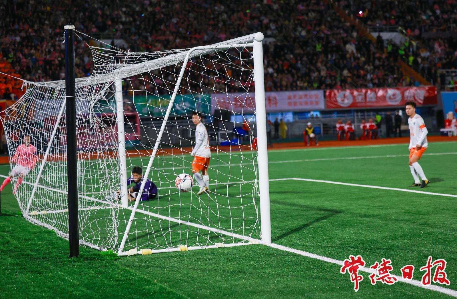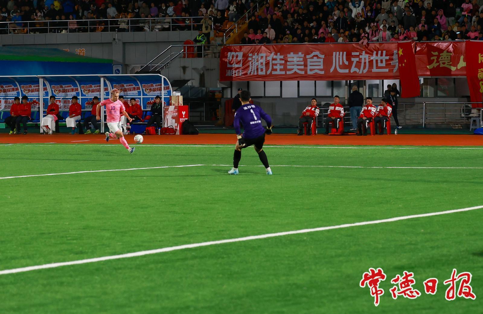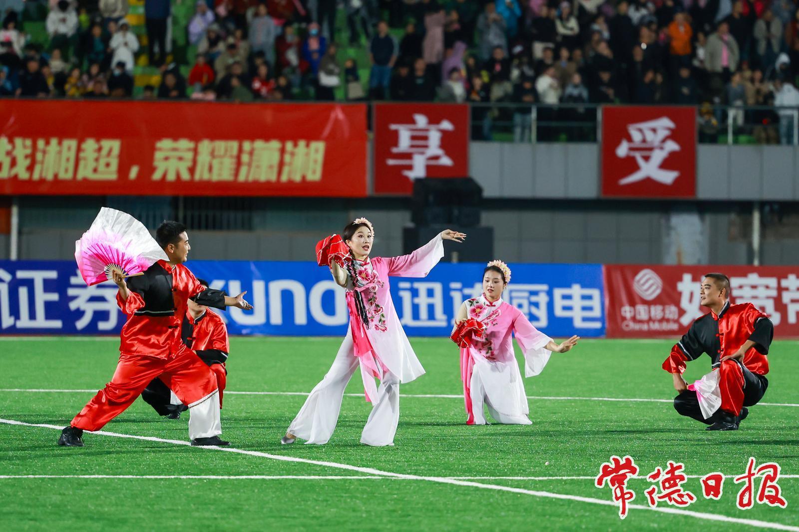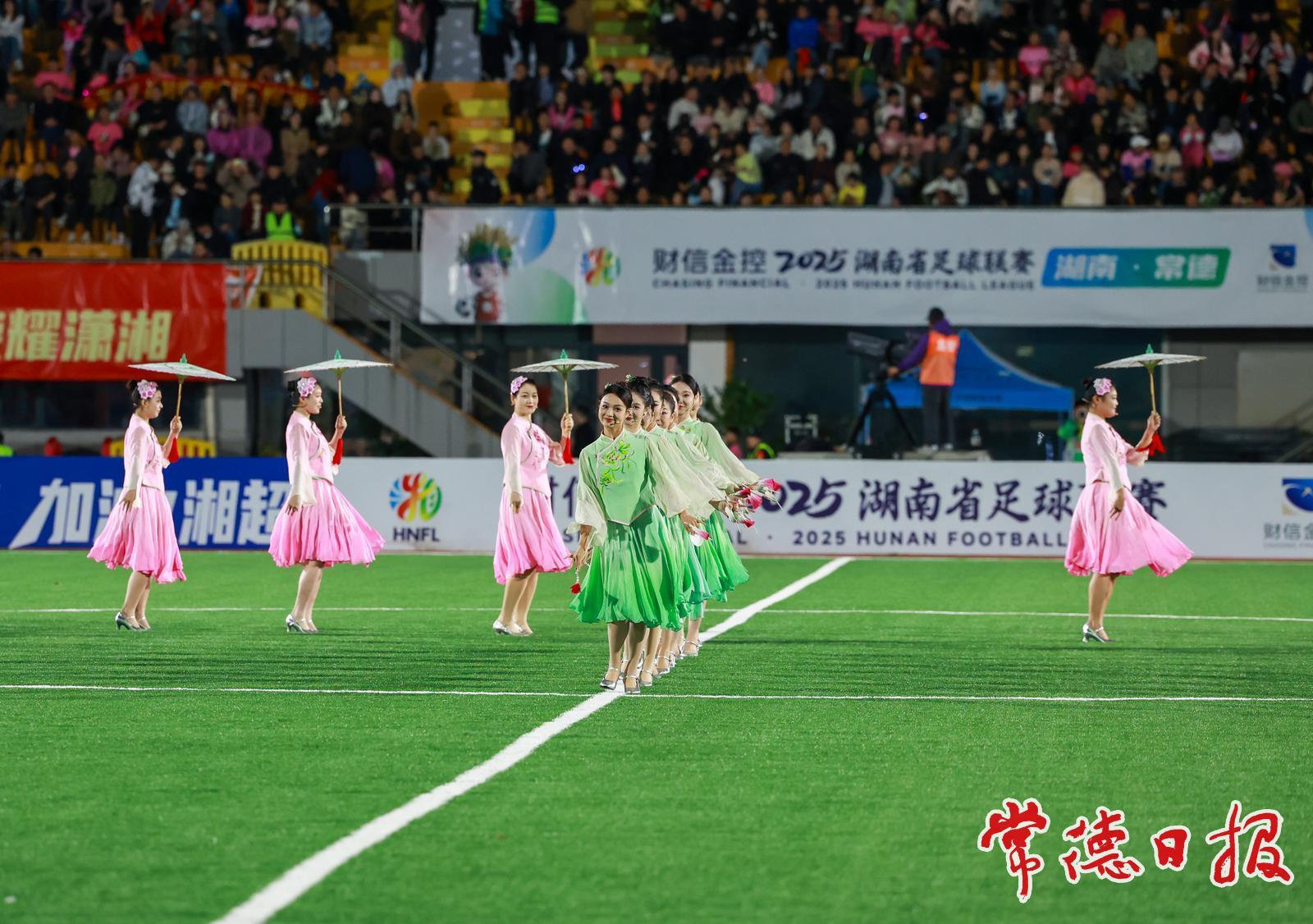 10月18日晚,2025年湖南省足球联赛(“湘超”)第六轮的比赛中,常德队主场迎战邵阳队,常德市体育中心灯火如昼,万余名球迷的呐喊声响彻云霄,将赛场气氛推向高潮。精彩的文艺节目,球员在场上激烈对抗,球迷的热情与精彩的比赛交相辉映,双方2:2握手言和,共同奉献了一场精彩纷呈的足球盛宴。常德日报记者 蔡文龙 摄