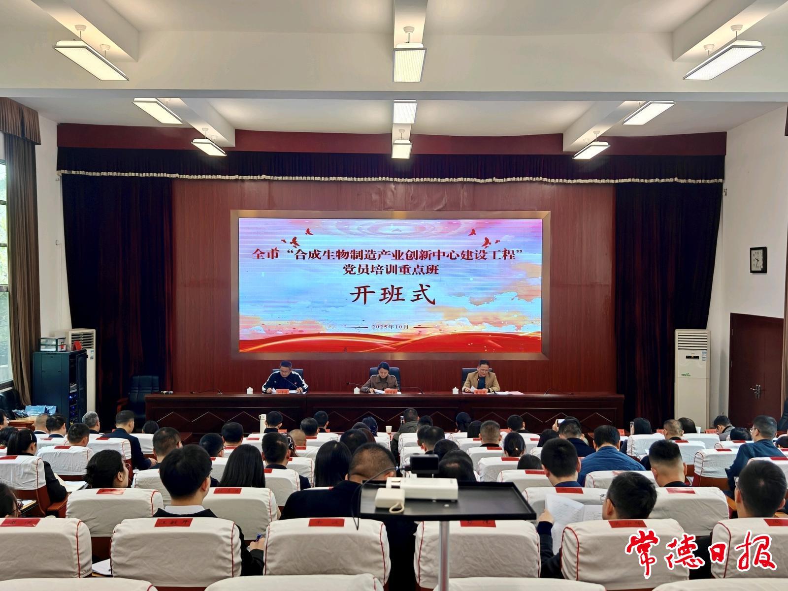 常德日报记者 江一舟 通讯员 吴永芳 文/图 10月22日,“合成生物制造产业创新中心建设工程”党员培训重点班在常德市委党校开班。此次培训由中共常德市委组织部主办、常德市科学技术局承办,聚焦合成生物产业创新发展与党建赋能,旨在提升党员骨干在产业前沿技术应用等方面的引领实践能力,为常德经济社会高质量发展提供组织保障。