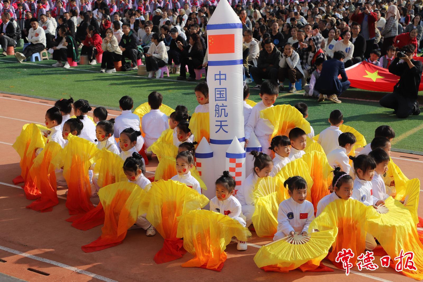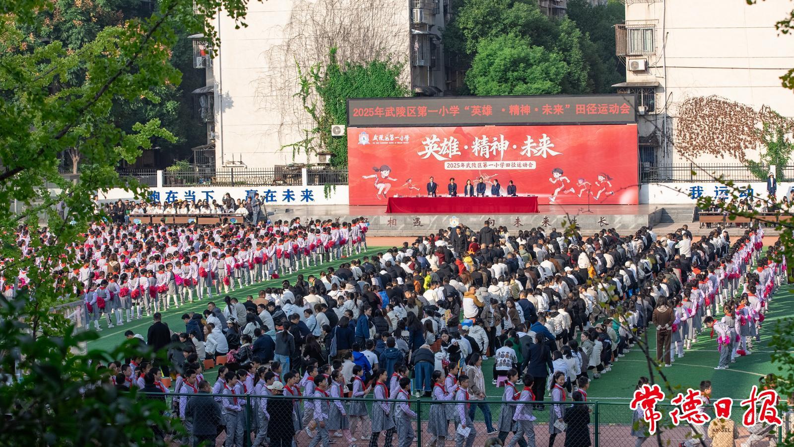 常德日报记者 黄云霞 通讯员 杨茜雯 罗露灵 文/图 10月23日,武陵区第一小学操场上彩旗猎猎、鼓乐喧天,以“英雄·精神·未来”为主题的2025年秋季田径运动会开幕式在此热闹举行。3600余名师生与家长共聚于此,见证这场充满活力的体育盛会。