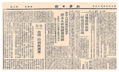 “日本投降了!”1945年8月15日,当从广播中听到日本天皇宣布无条件投降的消息,全岛一片沸腾。“我是多么兴奋,台湾终于结束了日本殖民统治,回到祖国的怀抱。我和同学们一起含着热泪欢迎祖国军队的到来。”台胞陈天章在一篇回忆文章中写道。