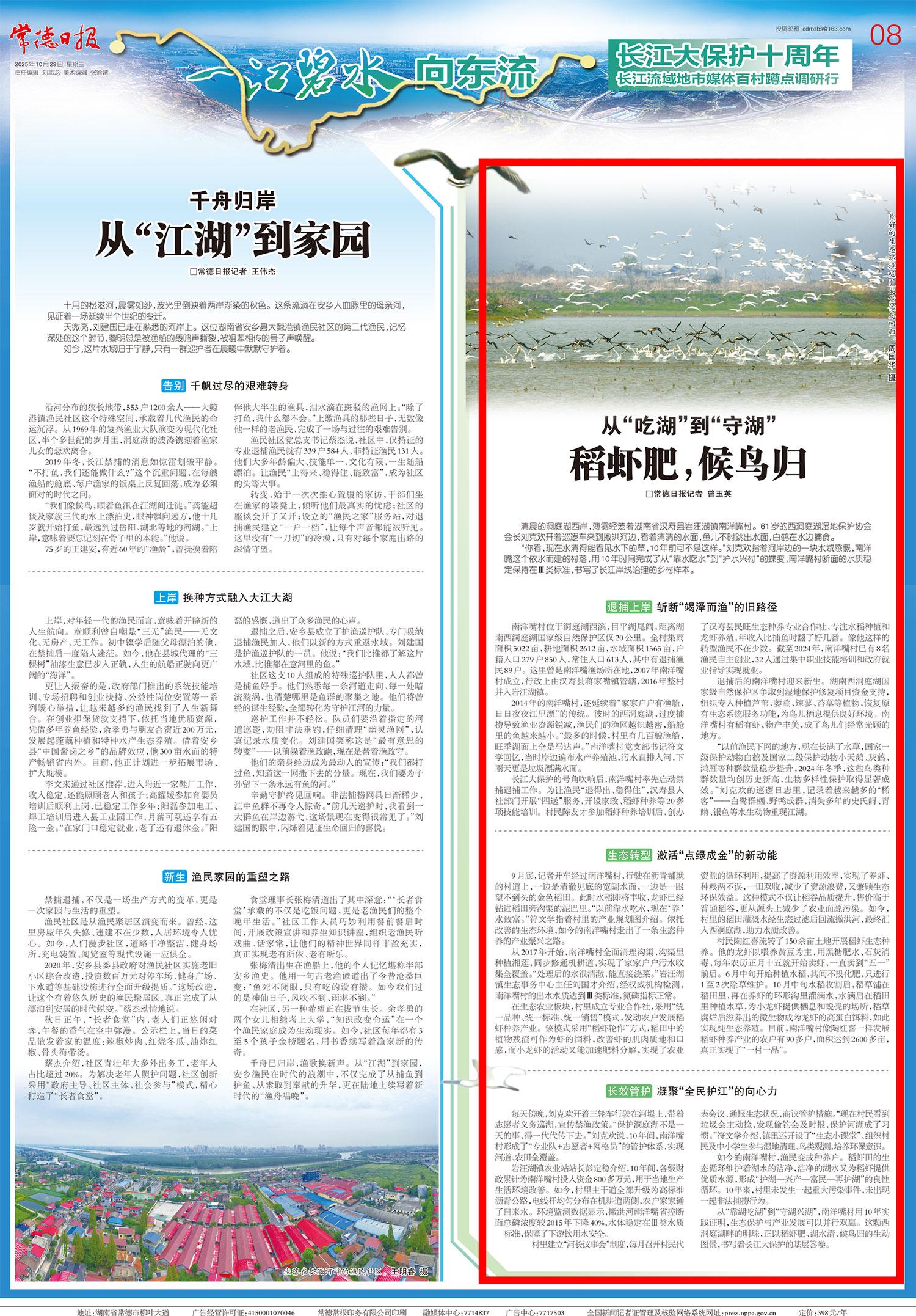 每天傍晚,刘克欢开着三轮车行驶在河堤上,带着志愿者义务巡湖,宣传禁渔政策。“保护洞庭湖不是一天的事,得一代代传下去。”刘克欢说,10年间,南洋嘴村形成了“专业队+志愿者+网格员”的管护体系,实现河道、农田全覆盖。