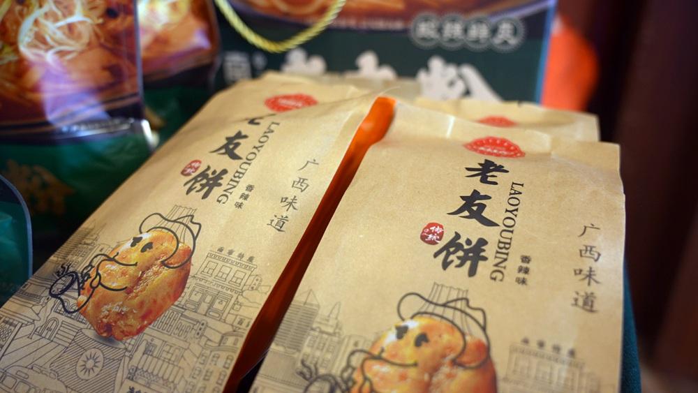 南宁新闻网副总编辑卢超则热情推介道:“我们带来了横州茉莉花茶和老友系列产品。老友粉和老友饼是南宁的地道美食,既有味道,也有情怀。”
