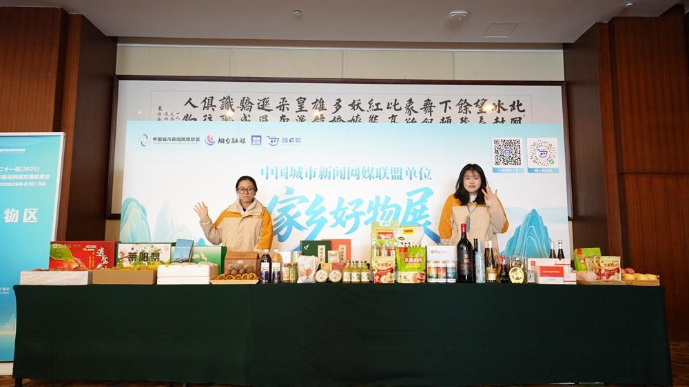烟台融媒10月29日讯(胶东在线记者 孙子研)10月28日,第二十一届中国城市新闻网媒联盟联席会在烟台举行。会场外特设的“家乡好物展区”成为一大亮点,烟台苹果、莱阳梨、烟薯25等优质农产品,以及张裕葡萄酒、烟台供销社茶叶、美时嘉钟表、小红盒化妆品等特色产品集中展示。同时,广西南宁、天津的特色产品也同台亮相,为来自全国各地的媒体代表献上一场跨越山海的“好物盛宴”。