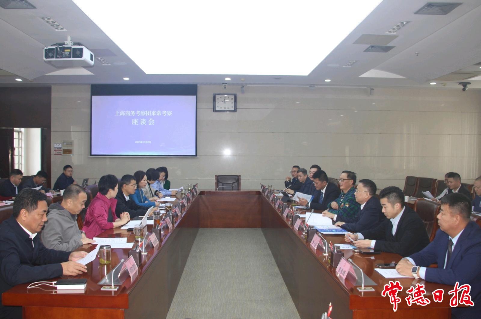 常德日报记者 李张念 文/图 11月2日,上海商务考察团来常德考察并座谈。市委常委、市委宣传部部长黎军锋主持座谈会,副市长陈华参会。