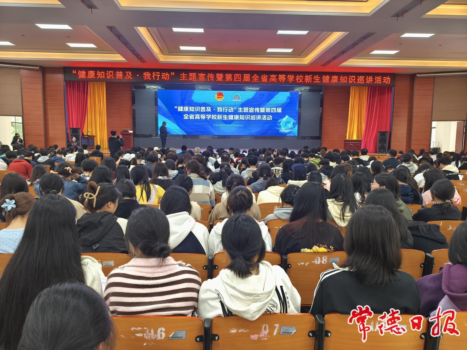 常德日报记者 杨志英 通讯员 李香莉 文/图 10月30日至31日,常德市“健康知识普及·我行动”主题宣传暨第四届全省高等学校新生健康知识巡讲活动,先后走进湖南文理学院、湖南应用技术学院,常德市中心血站邀请的两位献血榜样,用亲身经历为近千名高校新生带来一堂干货满满的健康课。