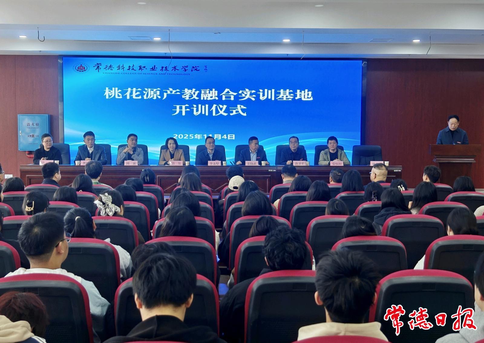 常德日报记者 江一舟 通讯员 陈章锋 文/图 11月4日,常德科技职业技术学院产教融合实训基地开训仪式举行。学校党委书记李永坚宣布开训,党委副书记、校长姜协武致辞。