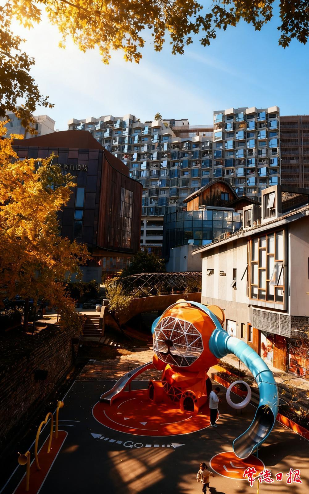 初冬暖阳中,老西门的怀旧风貌与远处现代建筑交相辉映,宛如一幅城市画卷