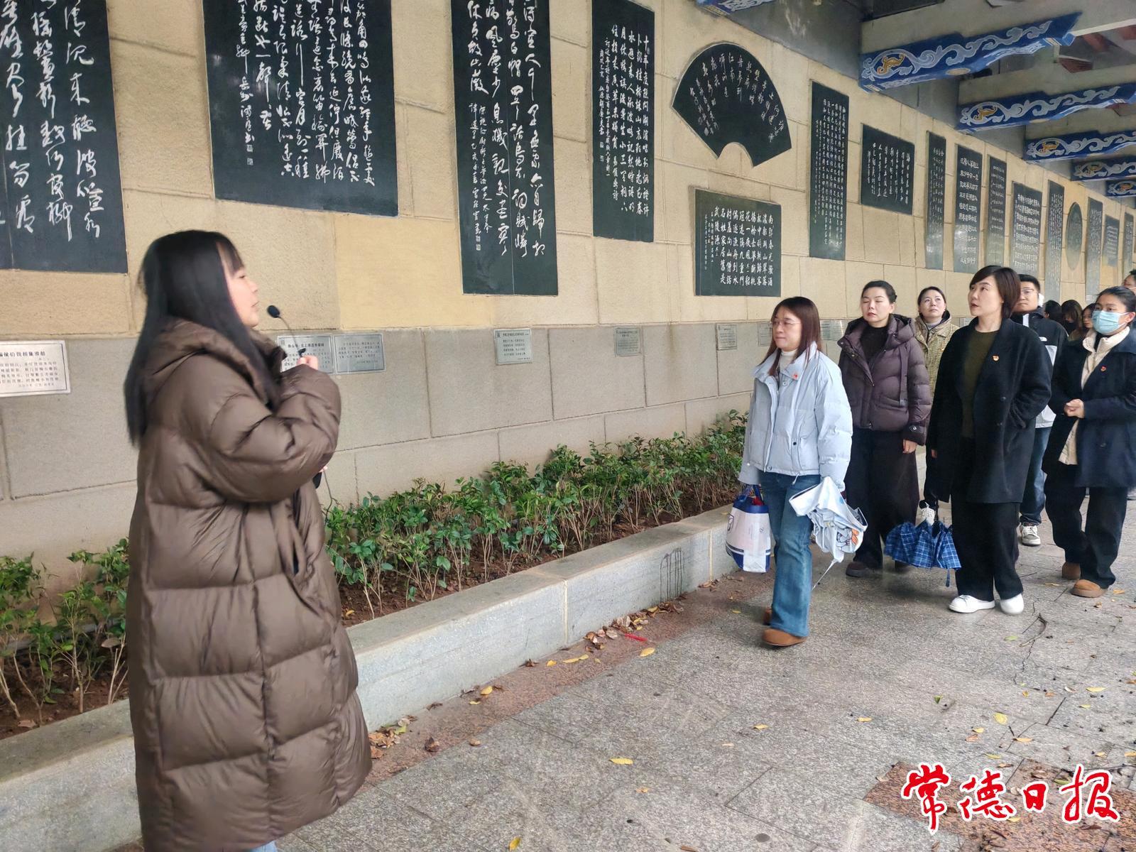 活动现场,党员在讲解员的引导下,先后参观了《名贤题咏》《武陵佳致》两大篇章。一块块石碑、一幅幅墨宝,不仅让大家直观感受到常德深厚的历史底蕴,更体会到诗词艺术与城市精神交融的独特魅力。