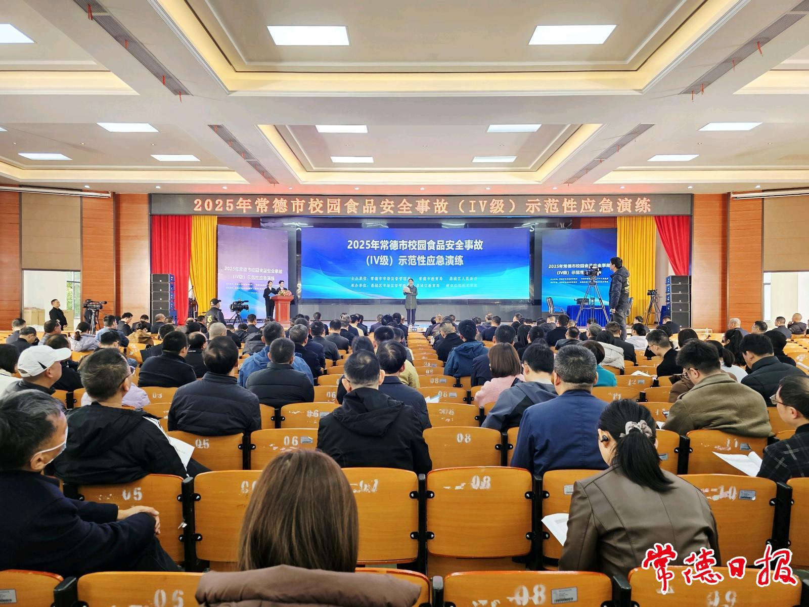 常德日报记者 曾帧 吕若琛 文/图 11月19日,2025年常德市校园食品安全事故Ⅳ级示范性应急演练在湖南应用技术学院举行。副市长袁世平出席活动。