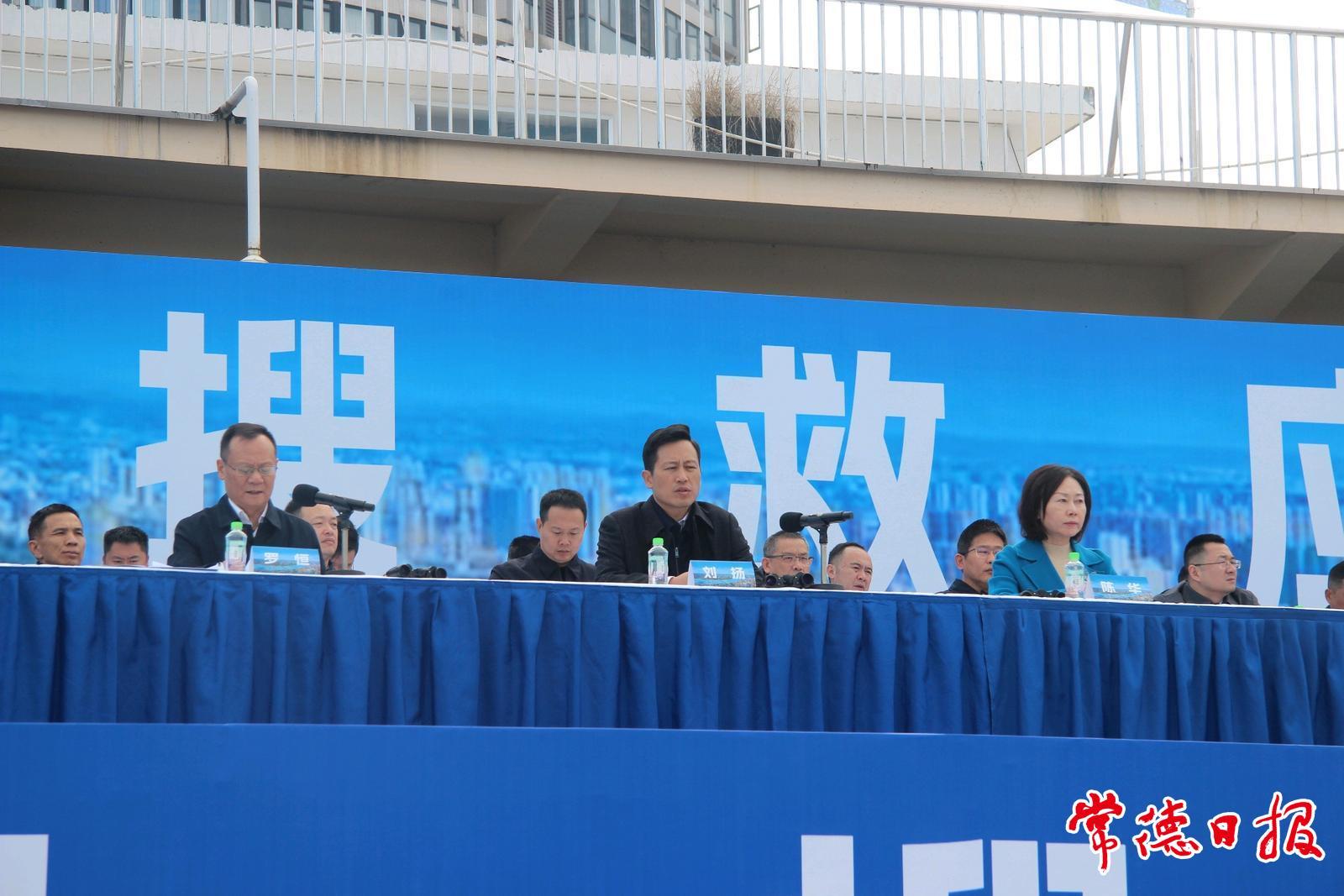 常德日报记者 胡秋菊 文/图 11月20日上午,2025年湖南省水上搜救应急演练在常德举行。省交通运输厅党组书记、厅长刘扬担任演练总指挥并对此次演练进行了点评。省交通运输厅党组成员、副厅长罗恒,省水运事务中心党委书记、主任张胜,副市长陈华等观摩演练。