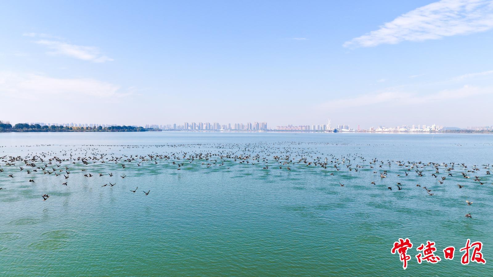 近年来,柳叶湖水质常年保持在Ⅲ类及以上标准,水域生态环境持续改善,前来歇息候鸟的数量和种类逐年递增的,呈现出一幅人鸟和谐共生的自然生态文明画卷。