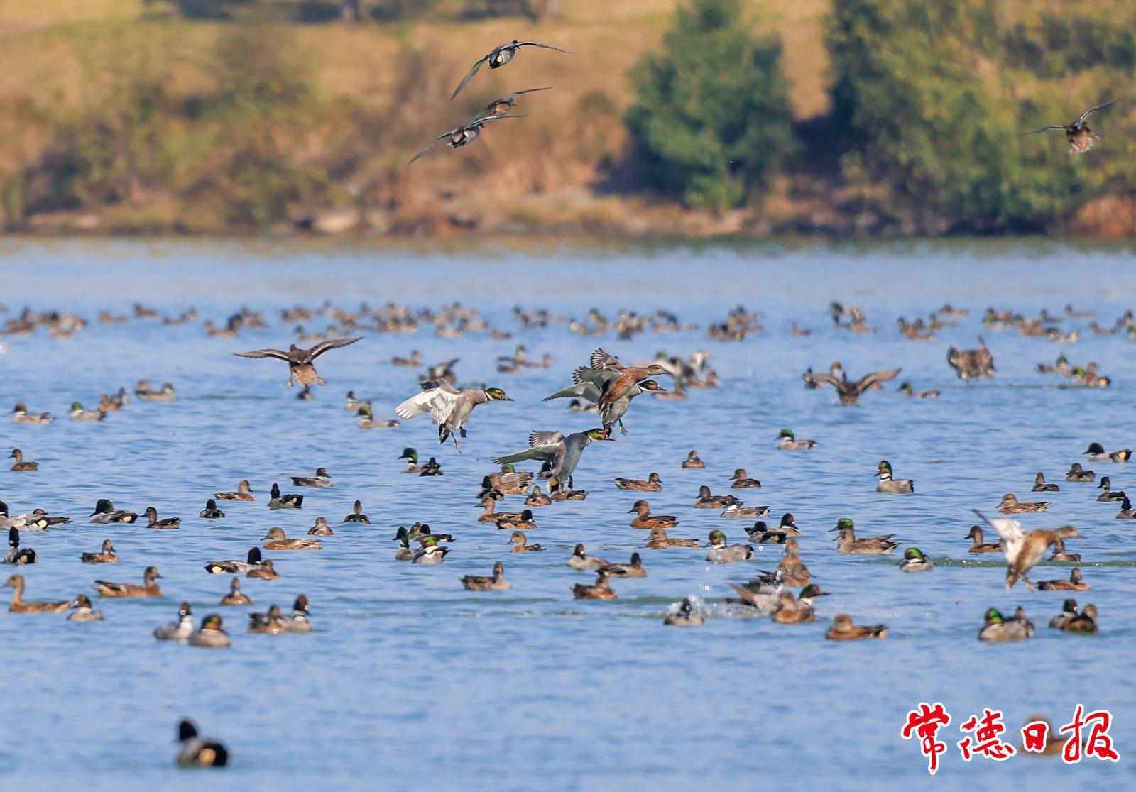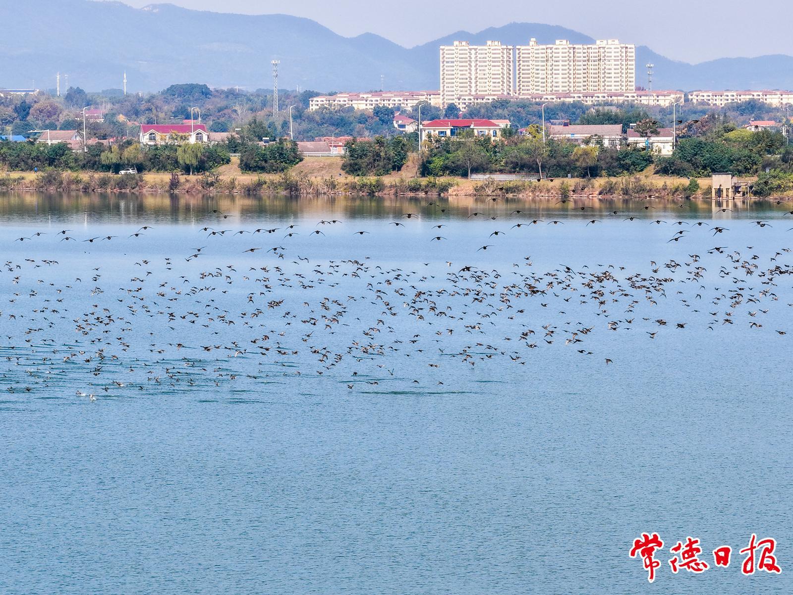 近年来,柳叶湖水质常年保持在Ⅲ类及以上标准,水域生态环境持续改善,前来歇息候鸟的数量和种类逐年递增,呈现出一幅人鸟和谐共生的自然生态文明画卷。