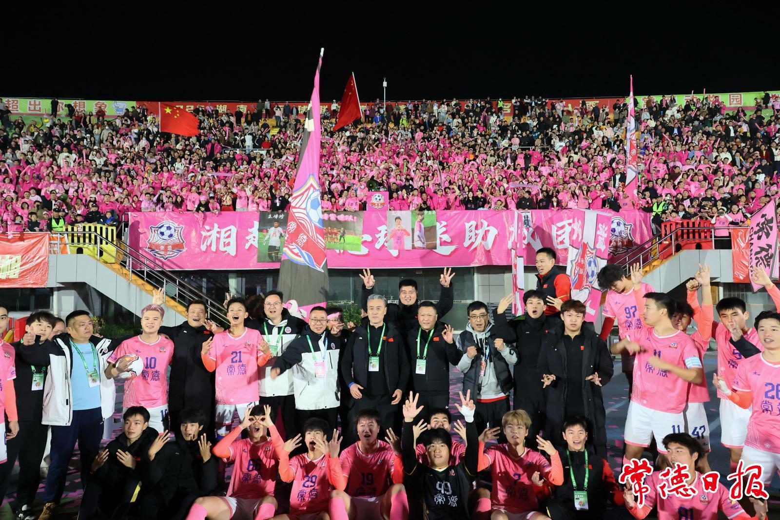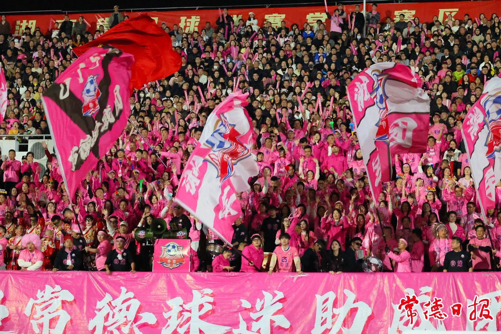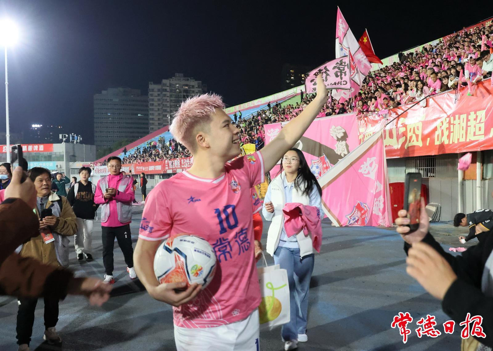 常德日报记者 黄云霞/文 徐珊珊/图 11月22日晚,“湘超”常规赛第11轮赛事在常德主场燃情落幕,常德队与益阳队展开激烈角逐。常德队全程掌控比赛节奏,凭借压倒性的优势以4∶0完胜益阳队,锁定八强席位,稳固了球队积分榜第一梯队的位置。