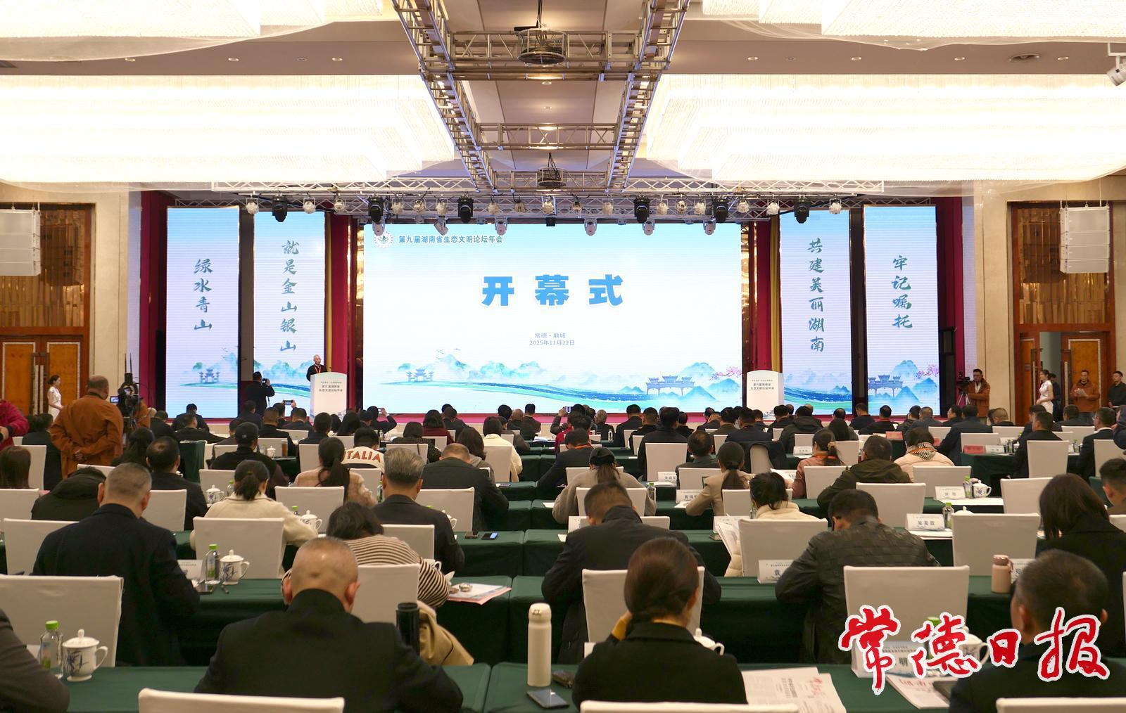 常德日报记者 陈欢 文/图 11月22日,第九届湖南省生态文明论坛年会在常德市鼎城区开幕,湖南省政协副主席、民进省委会主委潘碧灵,常德市委副书记、市长周振宇出席活动并致辞,湖南省生态文明研究与促进会会长、省社科联原党组书记周发源主持开幕式。
