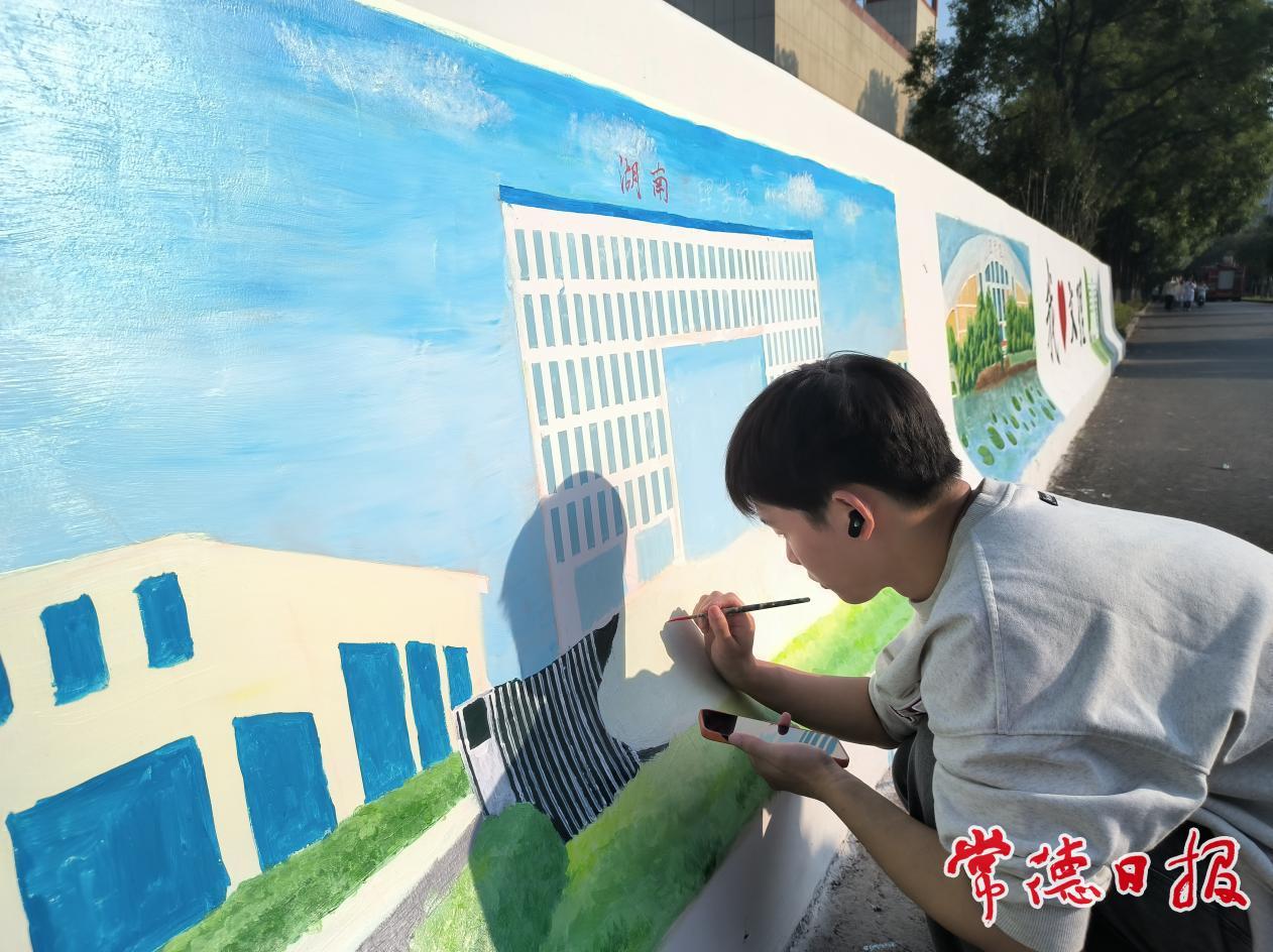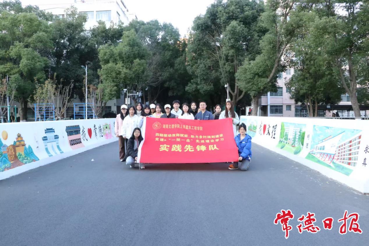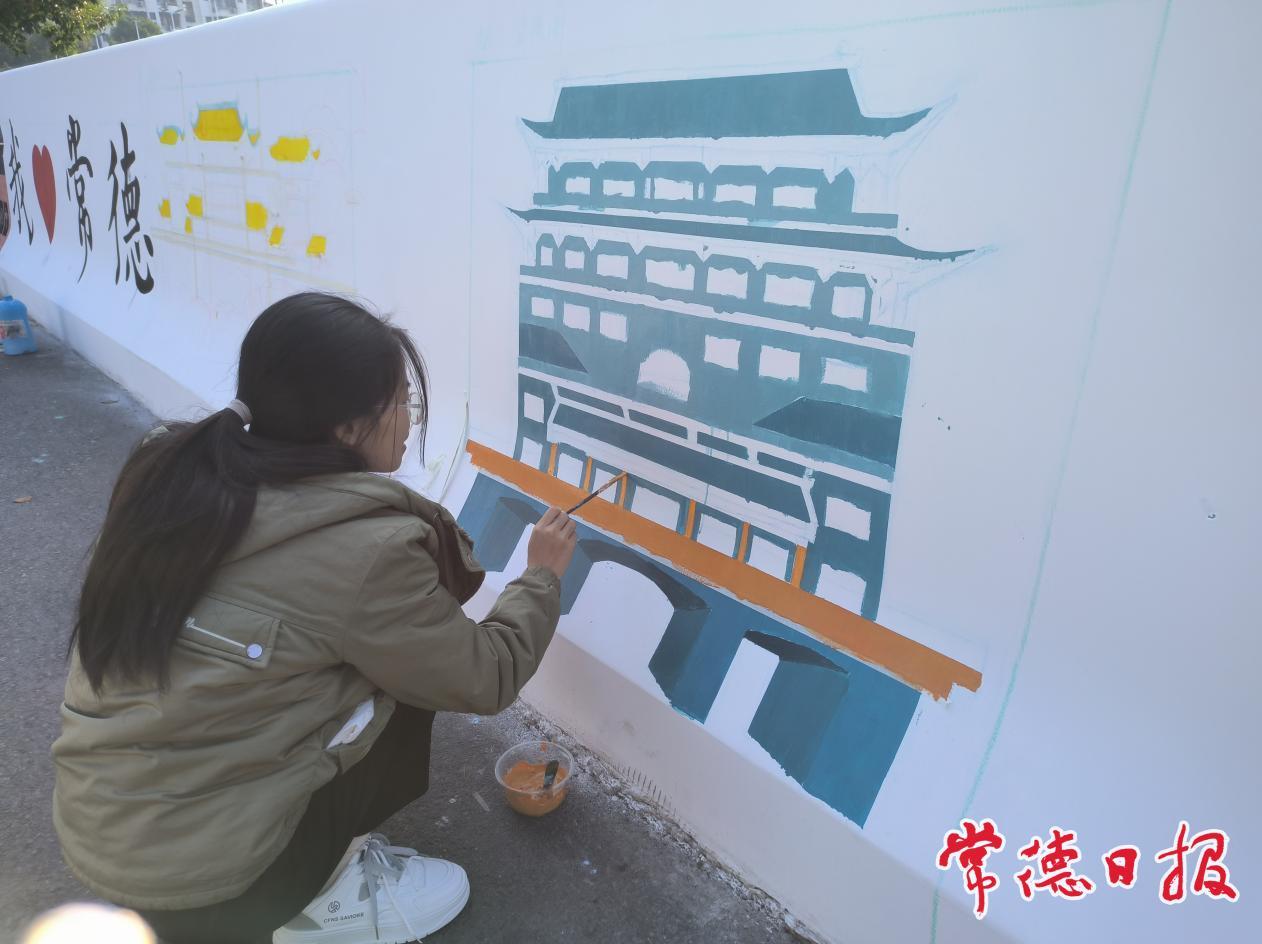 在此次桥体美化中,学生们充分发挥专业特长,将太阳山、桃花源、中国常德诗墙等常德地标景观与学校图书馆、船型楼等校园建筑巧妙融合,通过“我爱常德”“我爱文理”等主题文字,构建起连接学子与母校、学子与城市的情感纽带。