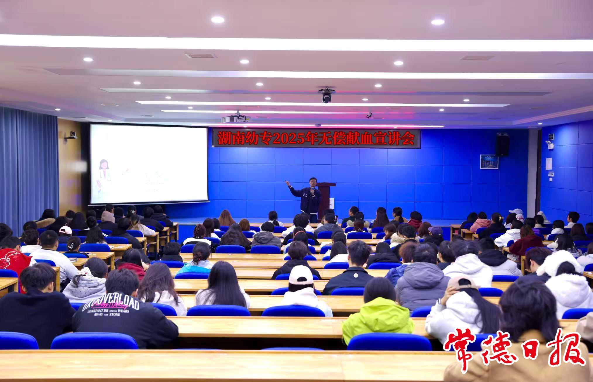 常德日报记者 王浪 通讯员 李香莉 文/图 11月25日,常德市“健康知识普及·我行动”主题宣讲活动走进湖南幼儿师范高等专科学校,特邀讲师刘洋宇为在场200多名学生带来了一场生动而富有感染力的献血知识宣讲。