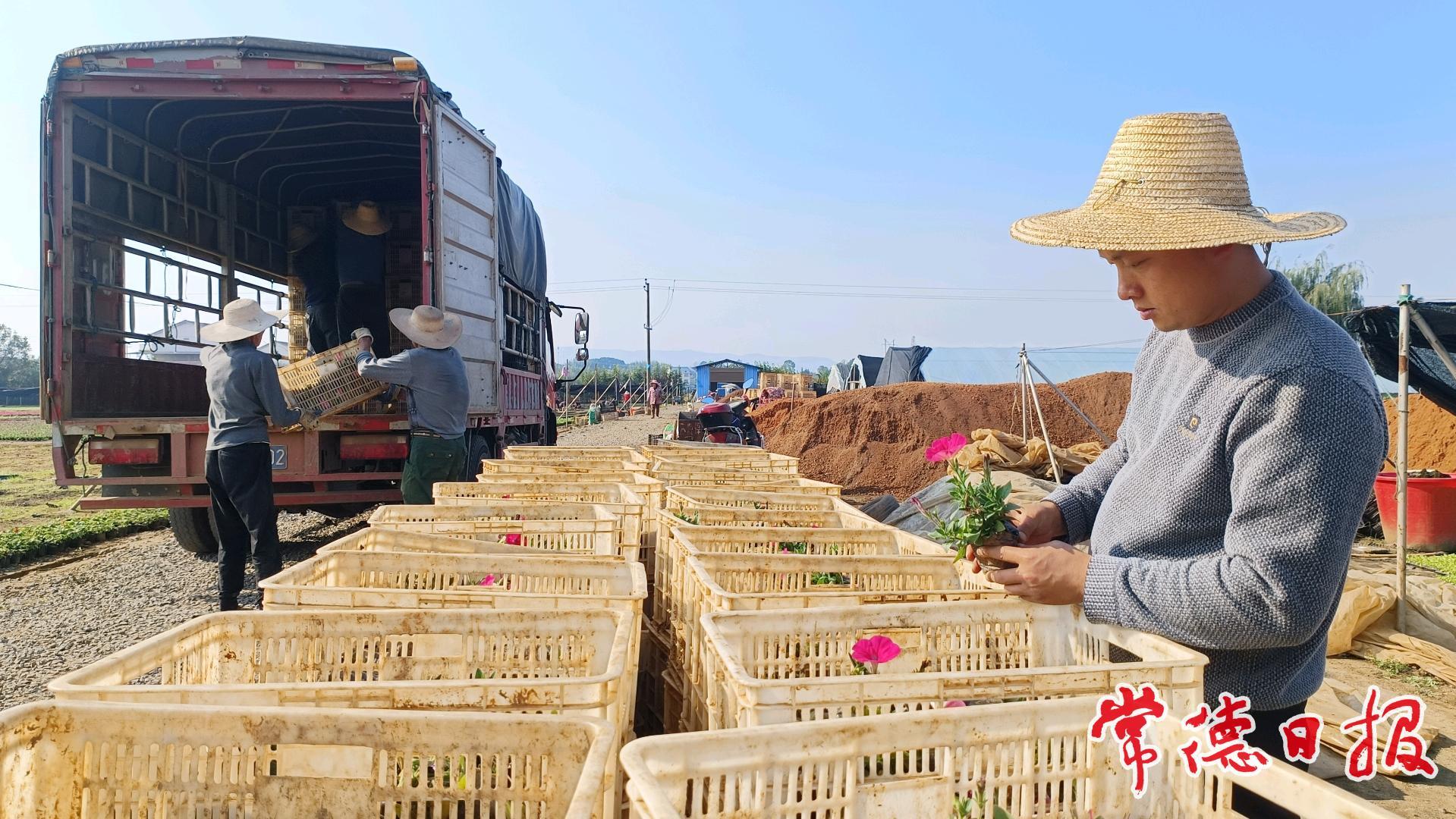 初冬的鼎城区镇德桥镇刘家桥村,微风里裹挟着清甜的花香。芸蔓花卉种植基地内,一串红热烈似火,矮牵牛娇羞绽放,石竹摇曳生姿,20多种草花将冬天铺展成五彩斑斓的画卷。基地负责人刘刚正和工人们一起,仔细检查即将发往市区的花苗。“这批货是市政的急单,品相可得把好关。”他的叮嘱里满是对这些花卉的珍视。