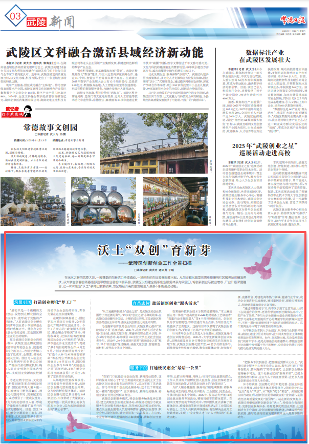 从草根创业者到大学生创客,从传统行业到新兴领域,武陵区通过分层分类培育,让不同类型创业主体都能找到适合的发展路径。如今,在武陵大地,无论是刚走出校门的青年学子,还是扎根基层的普通群众,都能在创新创业浪潮中找到属于自己的舞台,全民创业热情正转化为推动经济发展的强大动力。