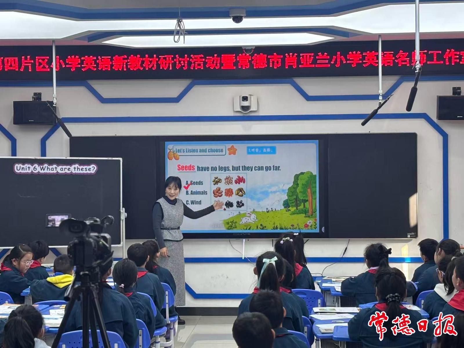 常德日报记者 黄云霞 通讯员 许灵茜 宋名明 文/图 近日,武陵区教研发展共同体第四片区暨常德市肖亚兰小学英语名师工作室在武陵区第一小学举行小学英语新教材教学研讨活动。区属专家团队、肖亚兰名师工作室成员、片区学校英语教师参与教学研讨。