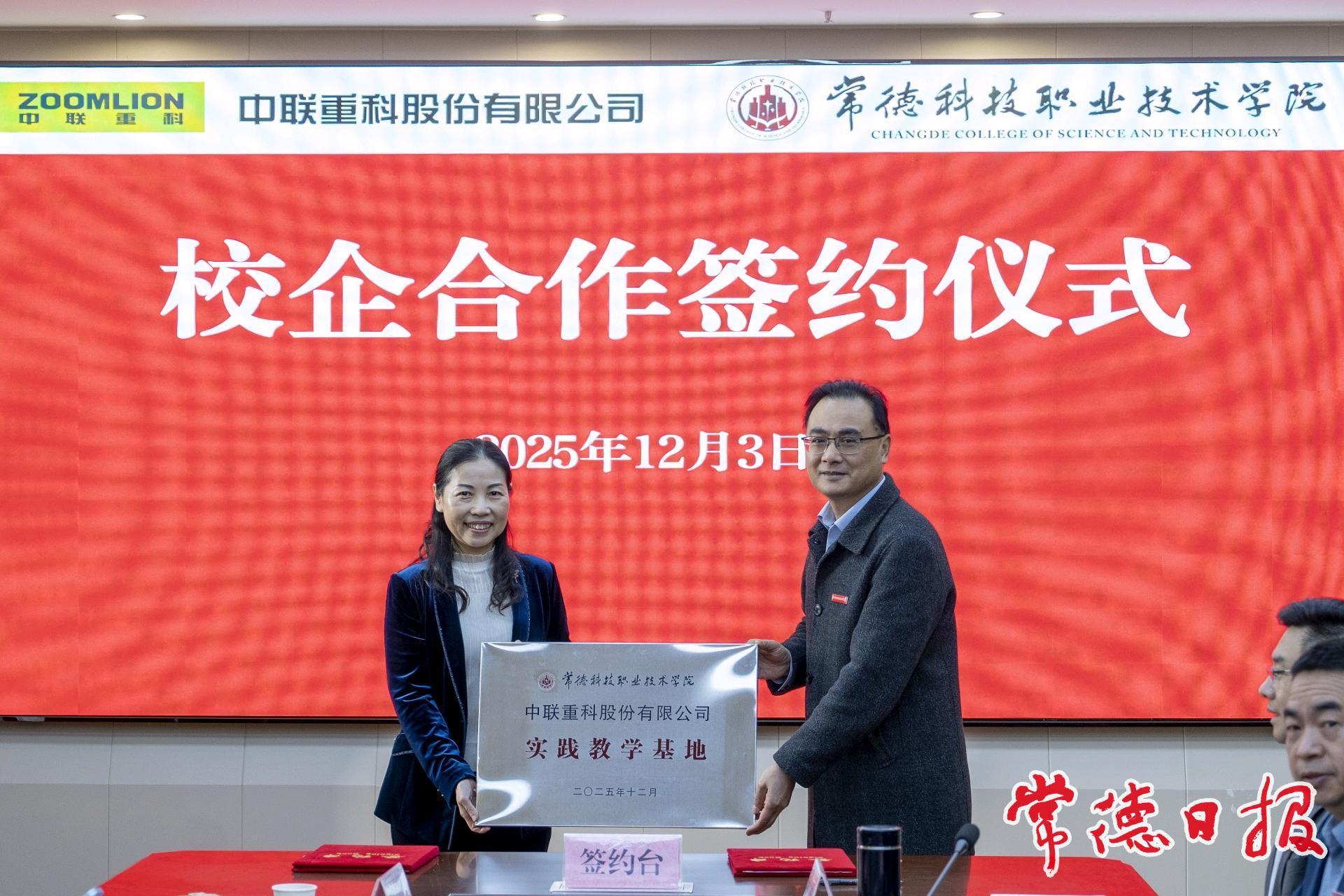 常德日报记者 江一舟 通讯员 陈章锋 贺敏 文/图 12月3日,常德科技职业技术学院与中联重科股份有限公司校企合作签约暨揭牌仪式顺利举行。此次合作标志着双方在人才培养、技术研发、师资建设等领域的深度融合迈入新阶段,为常德市职业教育深化产教融合、服务地方经济发展再添强劲动力。