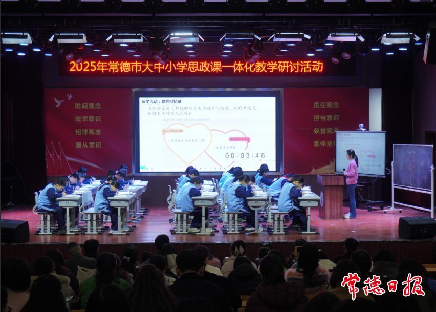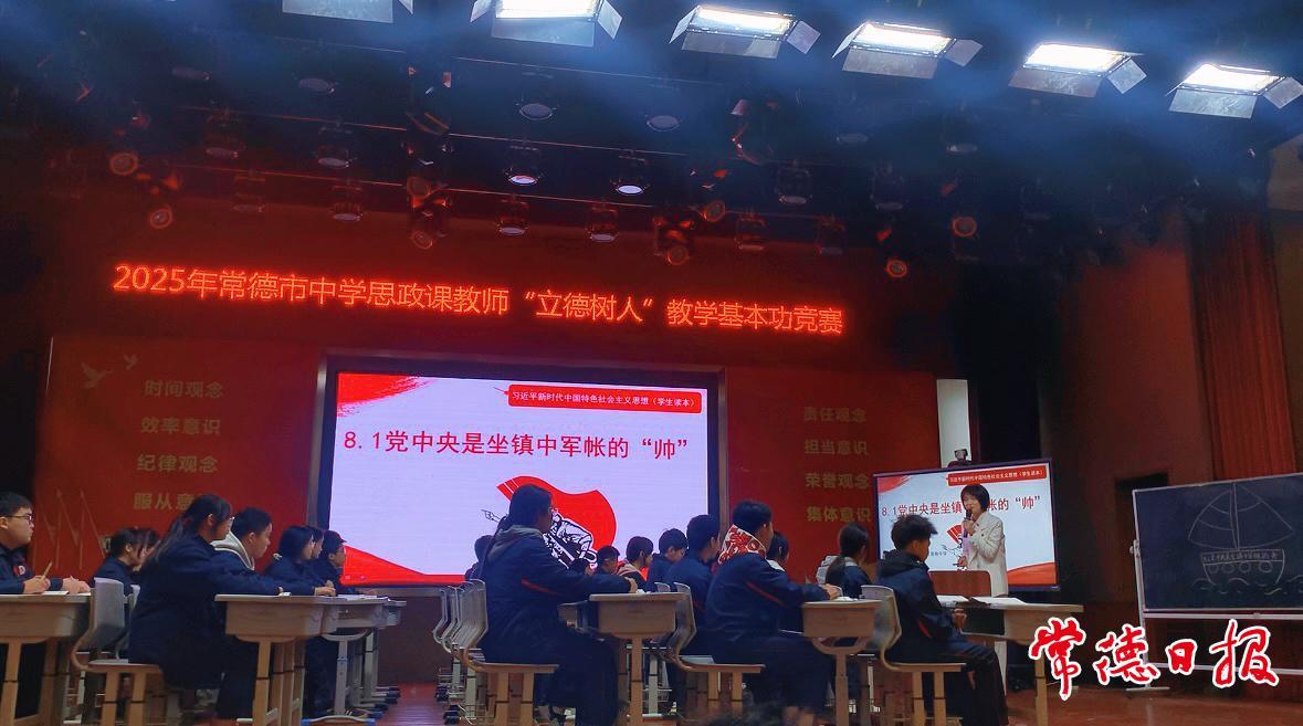 常德日报记者 杨鑫 通讯员 杨维维 谢荣峰 文/图 12月2日至3日,2025年常德市中学思政课教师“立德树人”教学基本功竞赛暨常德市大中小学思政课一体化教学研讨活动在常德市三中举行。这场由市教科院主办,湖南文理学院马克思主义学院、常德市三中承办的教学盛宴,全市21名优秀教师同台竞技,300多名思政教师现场观摩,为推动思政课改革创新注入强劲动力。