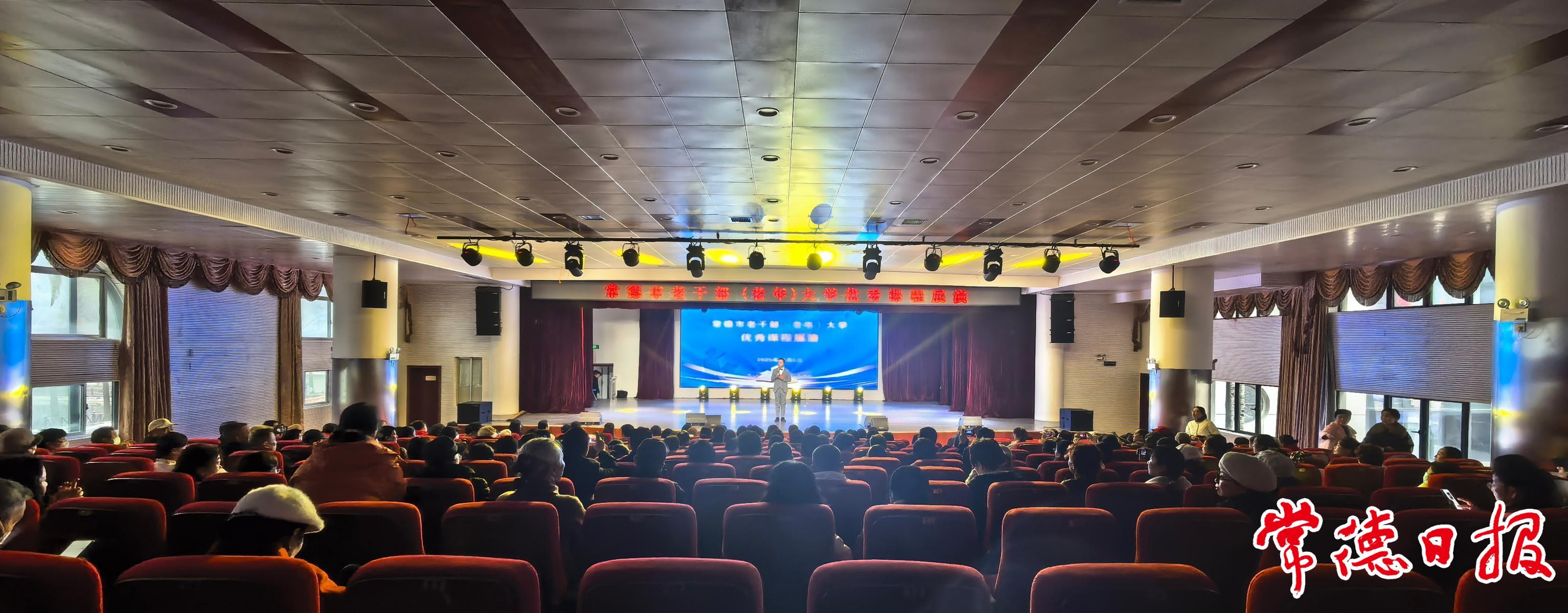 常德日报记者 邓淇月 通讯员 尹茗 文/图 12月5日,常德市老干部活动中心报告厅内弦歌不绝、掌声阵阵,全市老干部(老年)大学优秀课程展演在此举行。来自各县市区老干部(老年)大学的优秀教师代表、非遗展演团队,以及市老干部(老年)大学的教师和学员代表齐聚一堂,共同体验了一场既有传统韵味又充满智能科技感的“潮”课堂,展现了银龄学习的时尚新风貌。