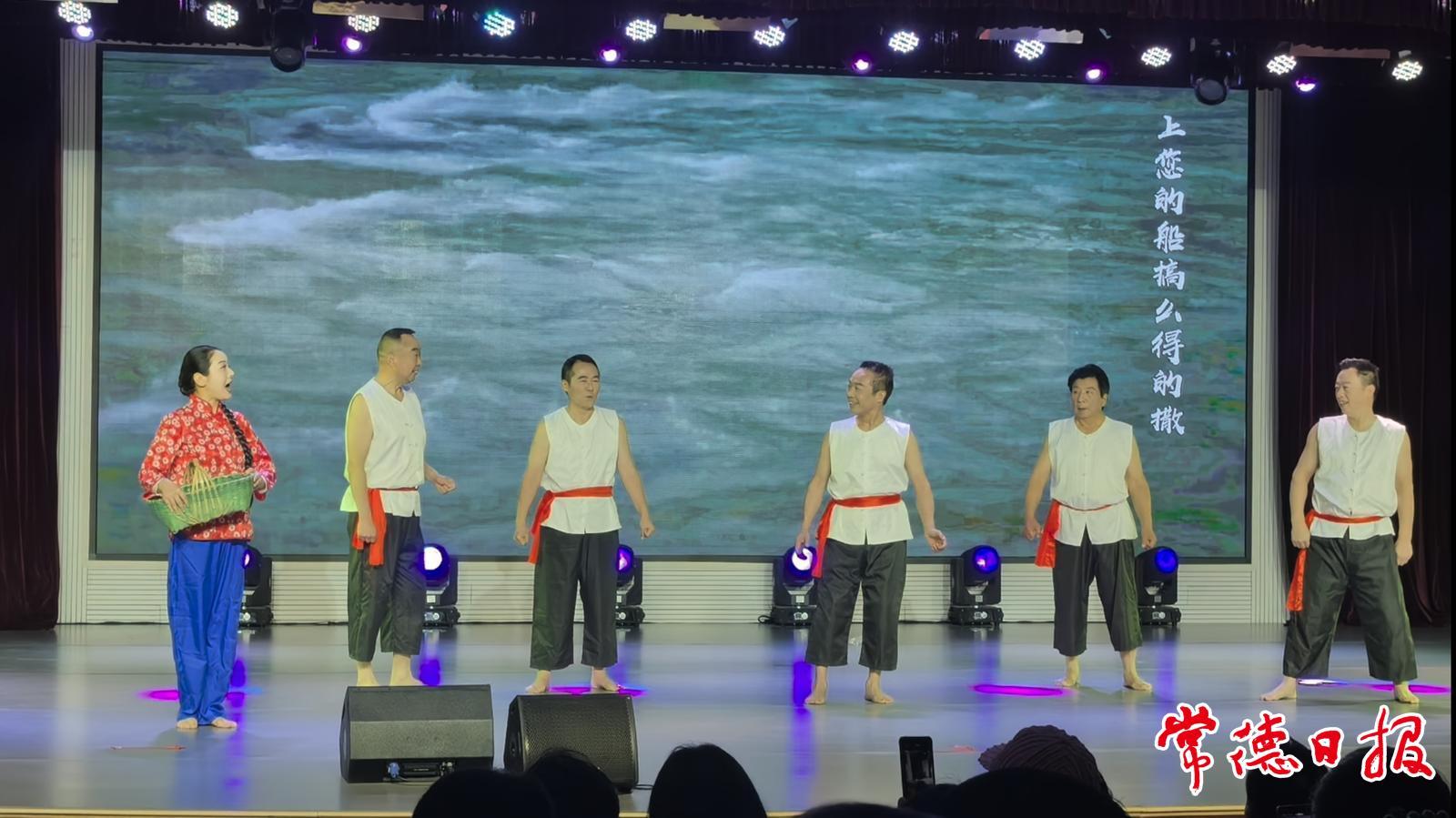 活动在激昂的二胡重奏《新赛马》中拉开帷幕。常德市老干部(老年)大学教师手持弓弦,指尖流淌出骏马奔腾的豪情,瞬间点燃全场气氛。随后,澧县学员以舞台剧形式演绎国家级非遗《澧水船工号子》,铿锵的呐喊与质朴的表演,再现了船工们迎风破浪的奋斗史诗;临澧县学员带来的九澧渔鼓《颂党恩》,用渔鼓筒的清脆击打声诉说岁月深情;武陵区学员演绎的常德丝弦《爱在常德城》,则以婉转曲调唱响家乡温情,引得观众沉浸于千年文脉的悠远韵律中。