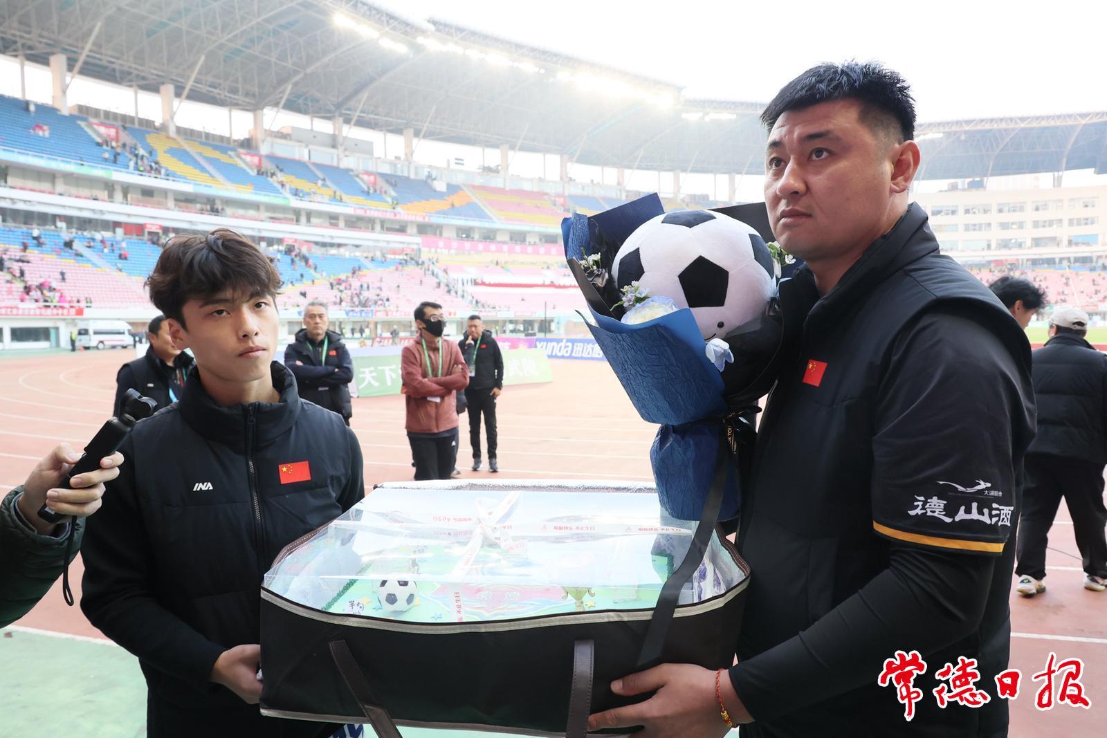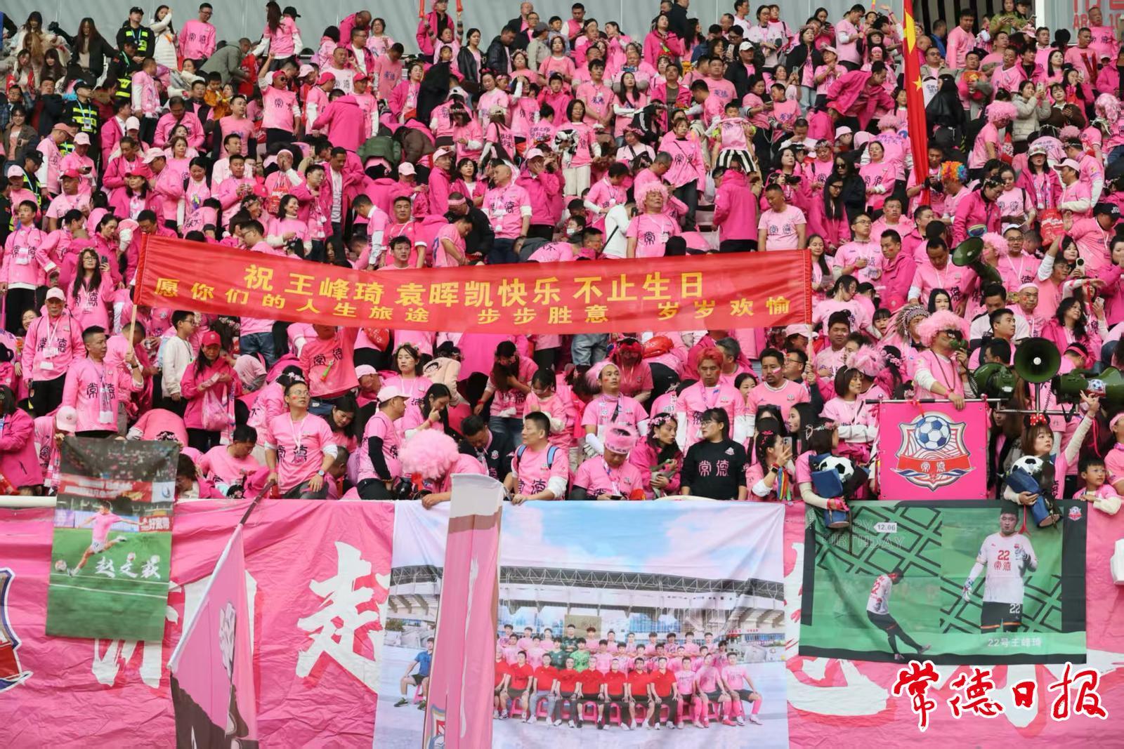 值得一提的是,当日4000名常德球迷远赴客场为球队呐喊助威,展现出强大的球迷“粉色军团”力量。比赛谢幕时,球迷助威团还为今天过生日的球员王峰琦、袁晖凯送上定制款足球生日蛋糕,暖心应援让赛场充满温情,不仅让观众感受到足球竞技的魅力,更见证了赛场内外的暖心。根据赛事安排,12月14日15:30常德队将主场对战衡阳队。