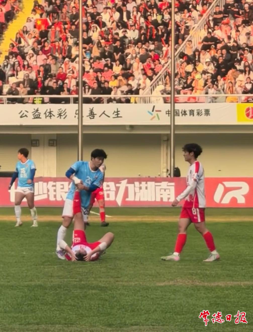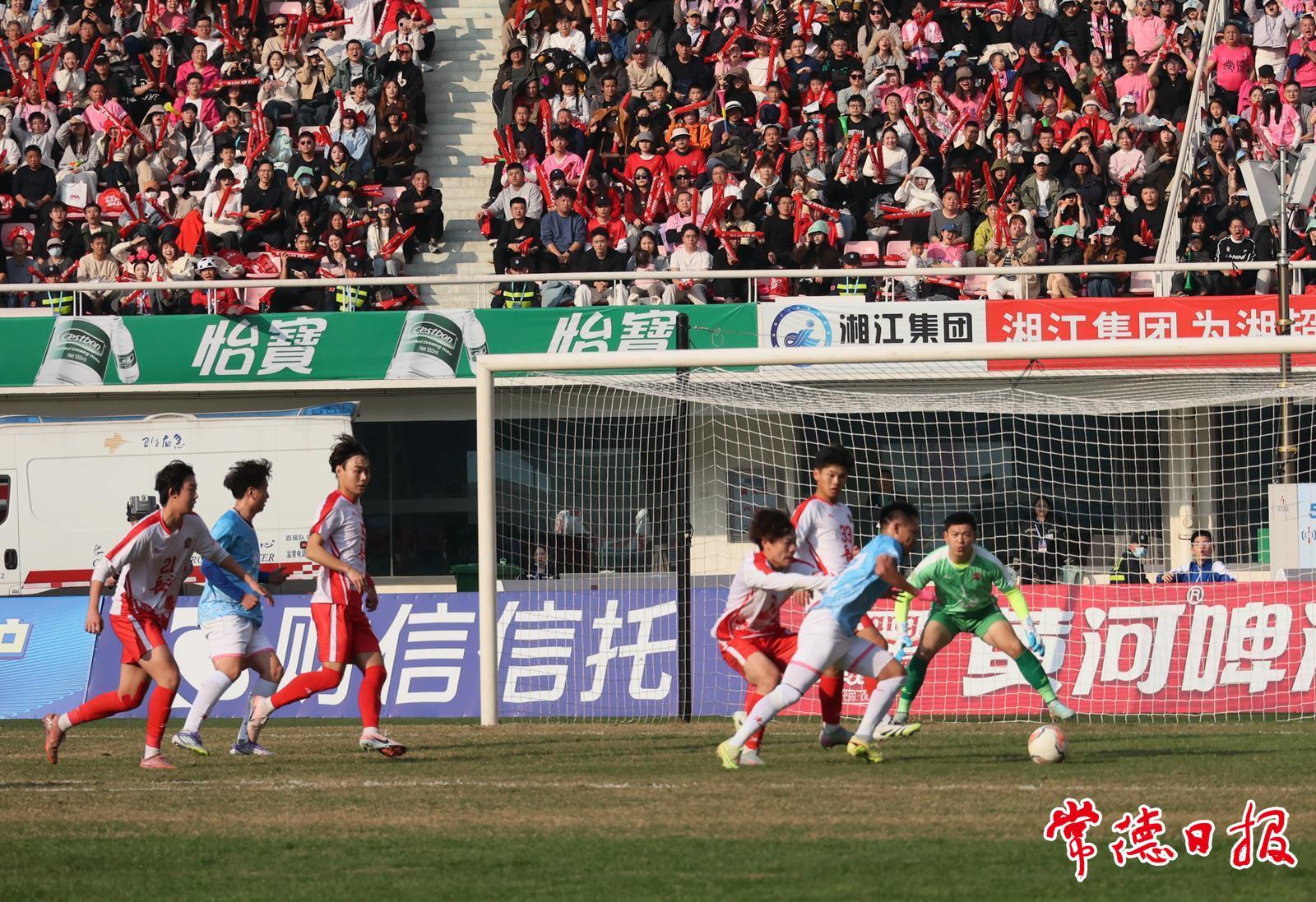 常德日报记者 黄云霞/文 徐珊珊/图 12月6日15:00,“湘超”常规赛最后一轮迎来焦点对决,常德队客场挑战长沙队,双方联袂奉献了一场攻防拉满的精彩赛事,最终常德队1:2不敌长沙队。比赛中既有激烈的攻防对抗,也涌现出诸多暖心瞬间。