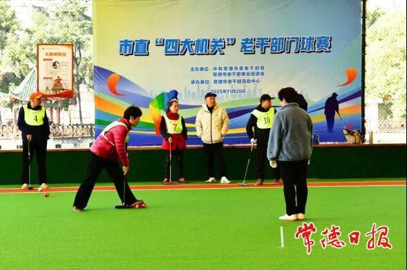 常德日报记者 邓淇月 通讯员 李濛 文/图 近日,常德市老干部活动中心门球场内气氛热烈,一场充满活力与情谊的门球赛在这里精彩上演。本次“银龄风采·乐享健康”市直“四大机关”老干部门球赛由市委老干部局、市老干部事业促进会主办,市老干部活动中心承办,吸引了来自市委办、市人大办、市政府办、市政协办4支代表队的近50名老干部参与。