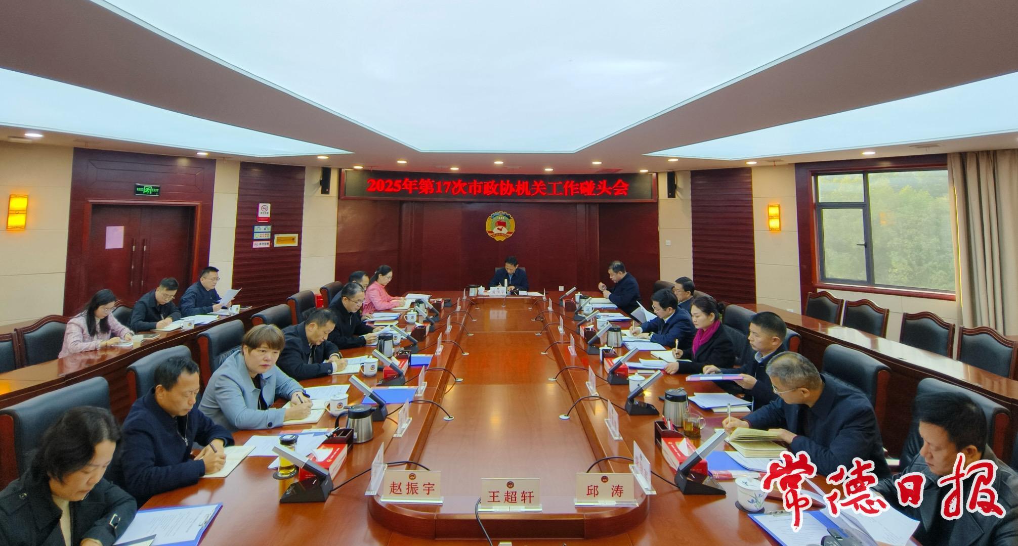 常德日报记者 丁时慧 通讯员 何加贝 文/图 12月8日,市政协主席、党组书记黄清宇主持召开2025年第17次市政协机关工作碰头会。