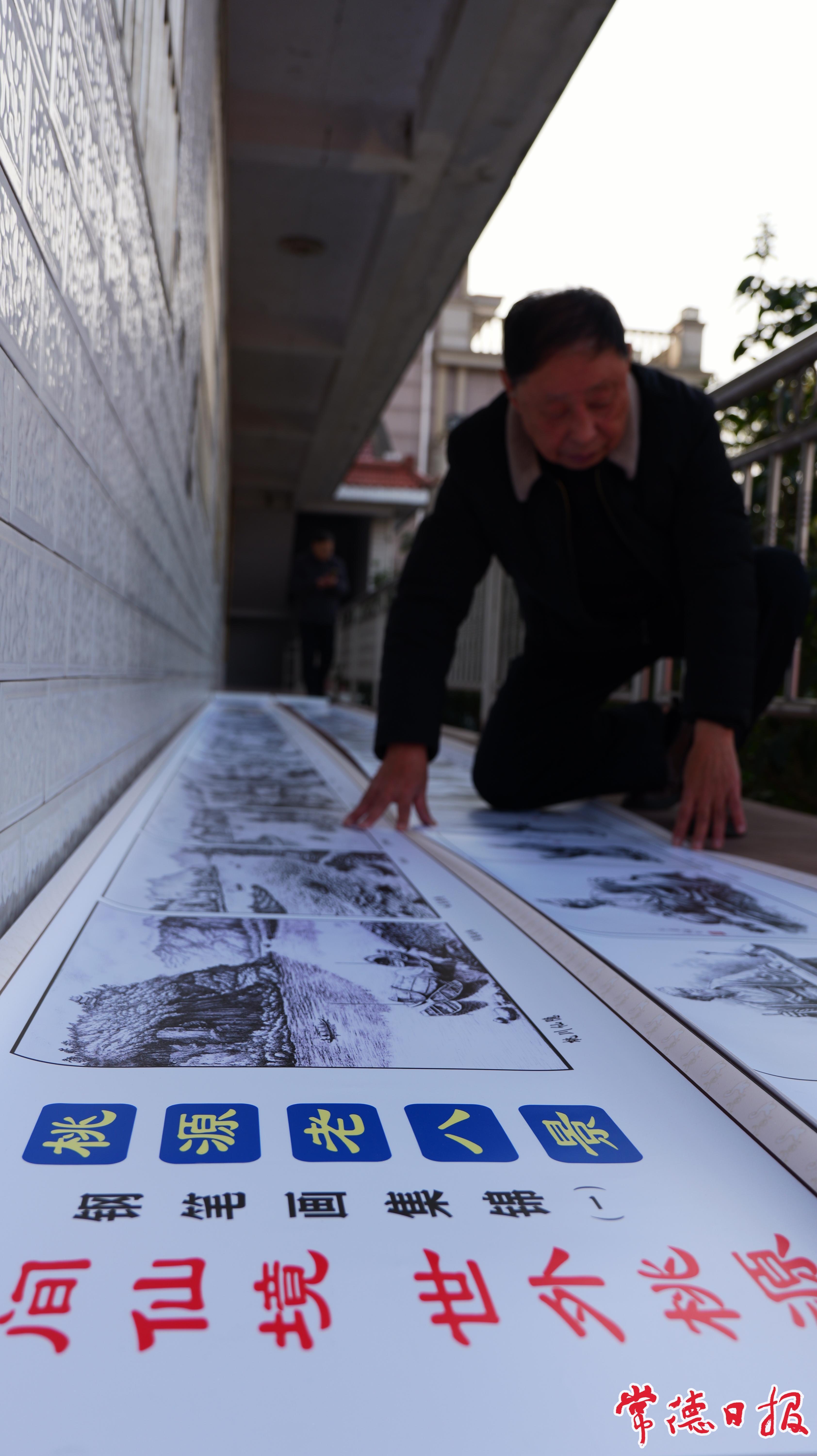 12月9日,记者在桃源县城临沅路的抗洪纪念碑旁,看到一道全新的文化景观静静铺展。一长达56米、面积约160平方米的墙面上,“桃源老八景、新八景”栩栩如生、跃然而出,引得过往市民驻足流连。这幅凝聚本土文化精髓的画作背后,是一位82岁老者躬身描绘的身影。他,就是吴慈安。