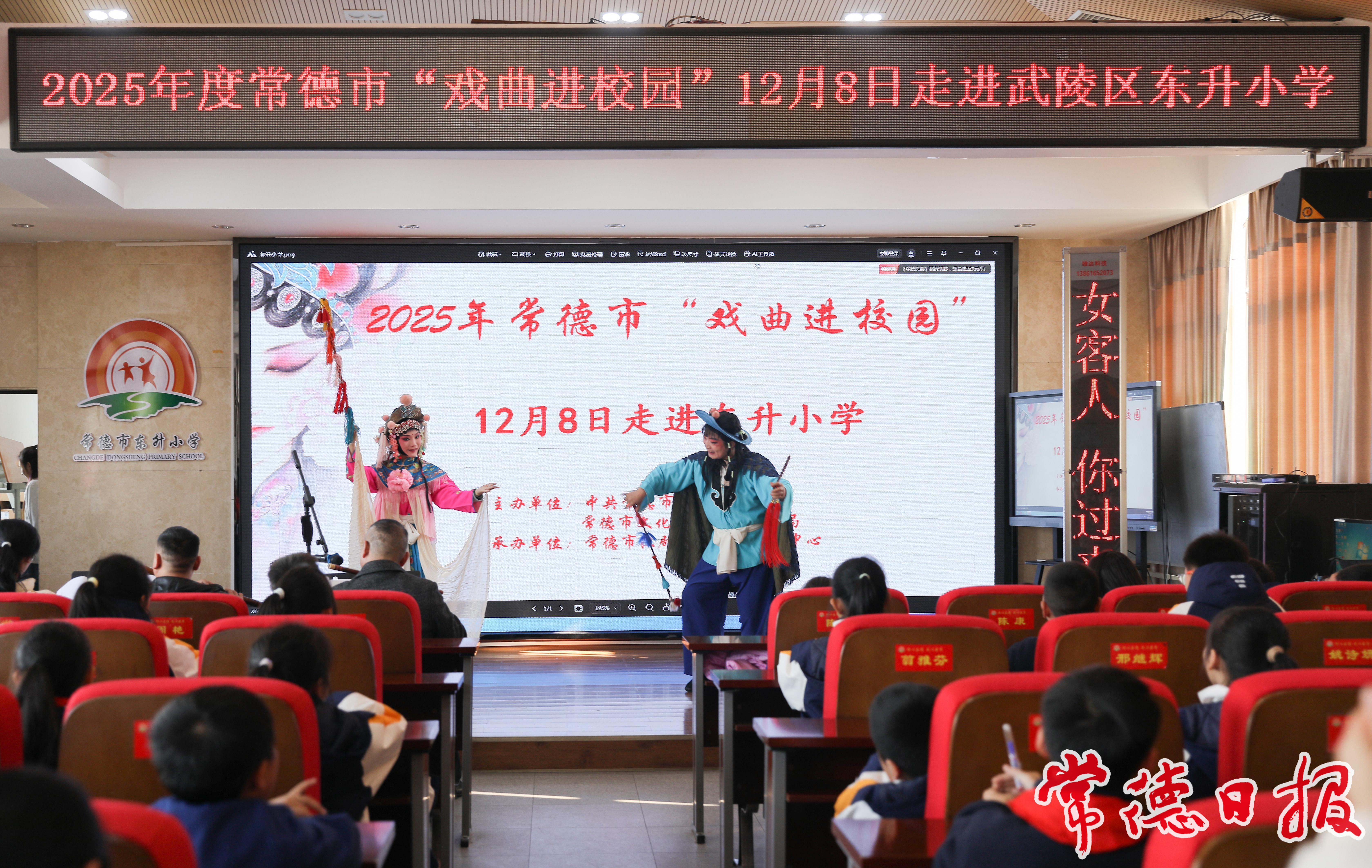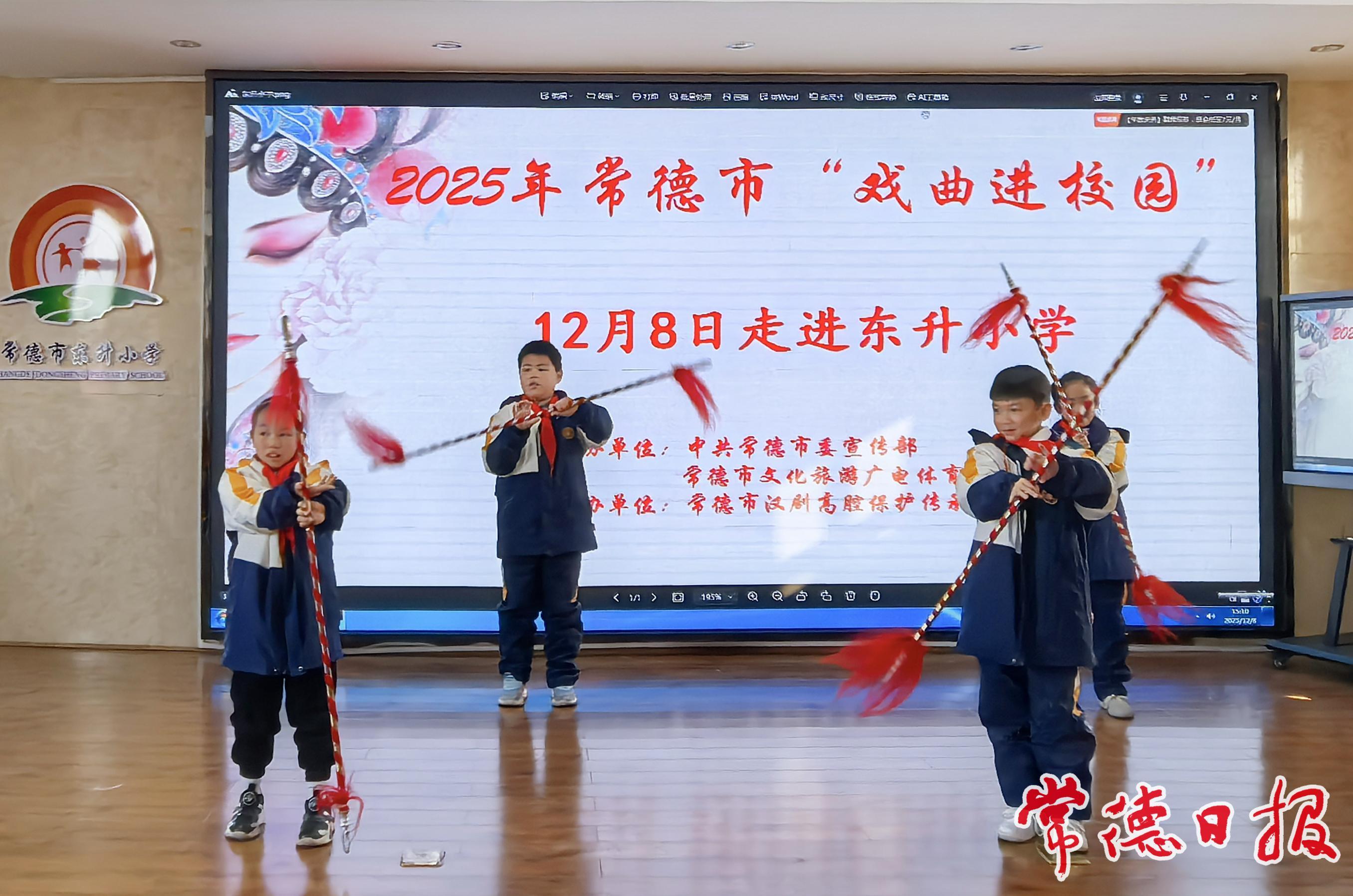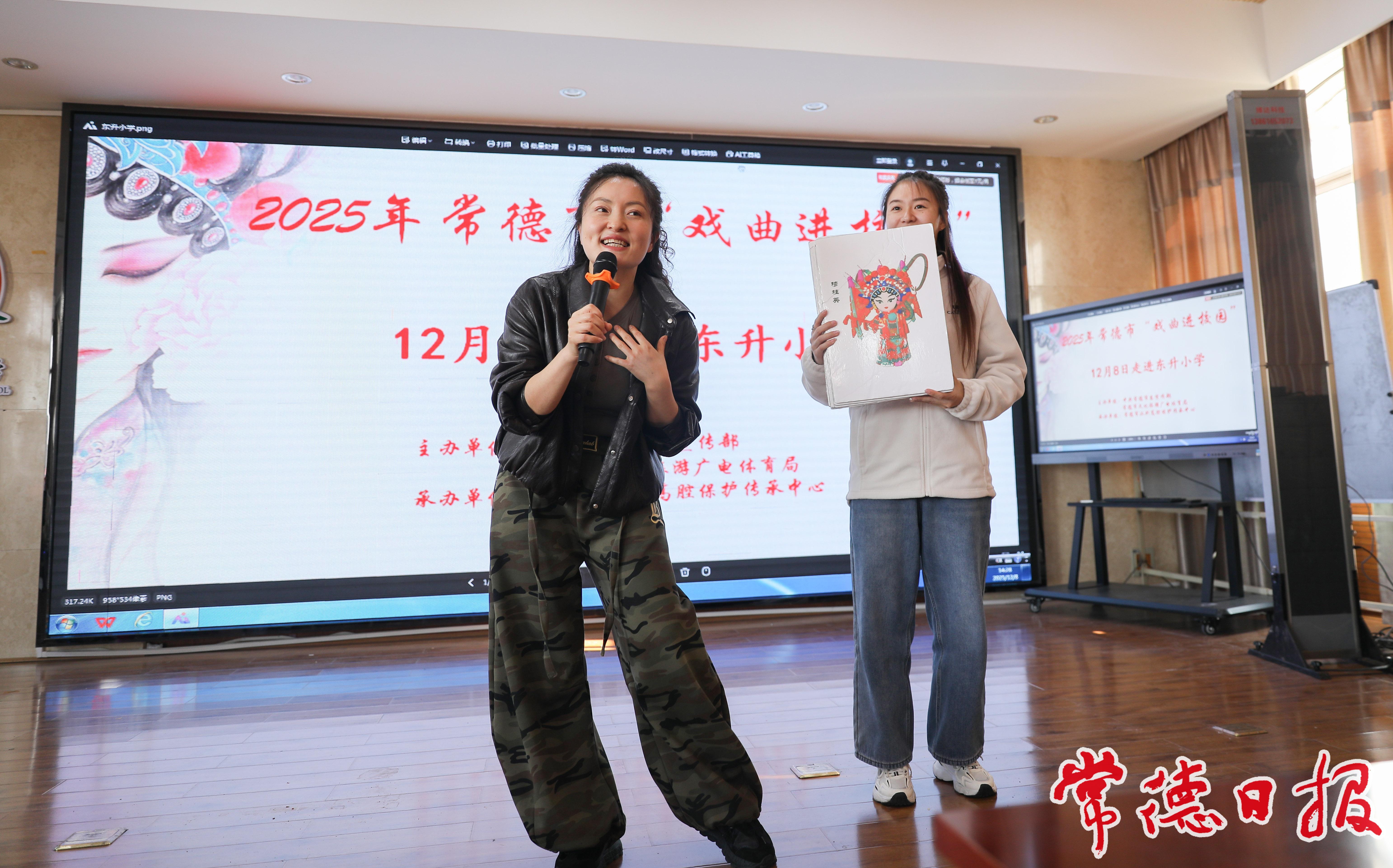 常德日报记者 李龙 通讯员 郭利 刘利 文/图 12月8日,常德汉剧高腔保护传承中心艺术家们走进武陵区东升小学,为学生们带来了一场别开生面的戏曲文化传承活动,让学生近距离感受了传统艺术的独特魅力。