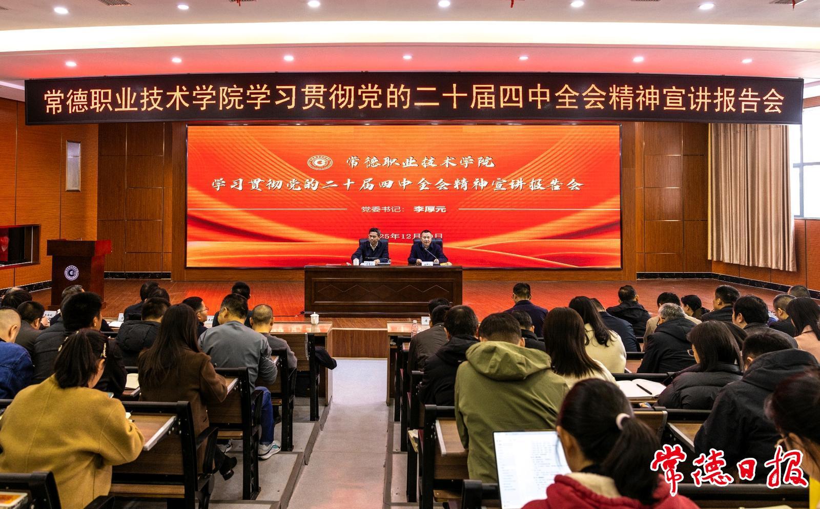 常德日报记者 李龙 通讯员 雷莺乔 为学习贯彻党的二十届四中全会精神,12月10日,市委宣讲团在常德职业技术学院进行宣讲。市委宣讲团成员、常德职业技术学院党委书记李厚元作宣讲报告,院长周华主持宣讲报告会。