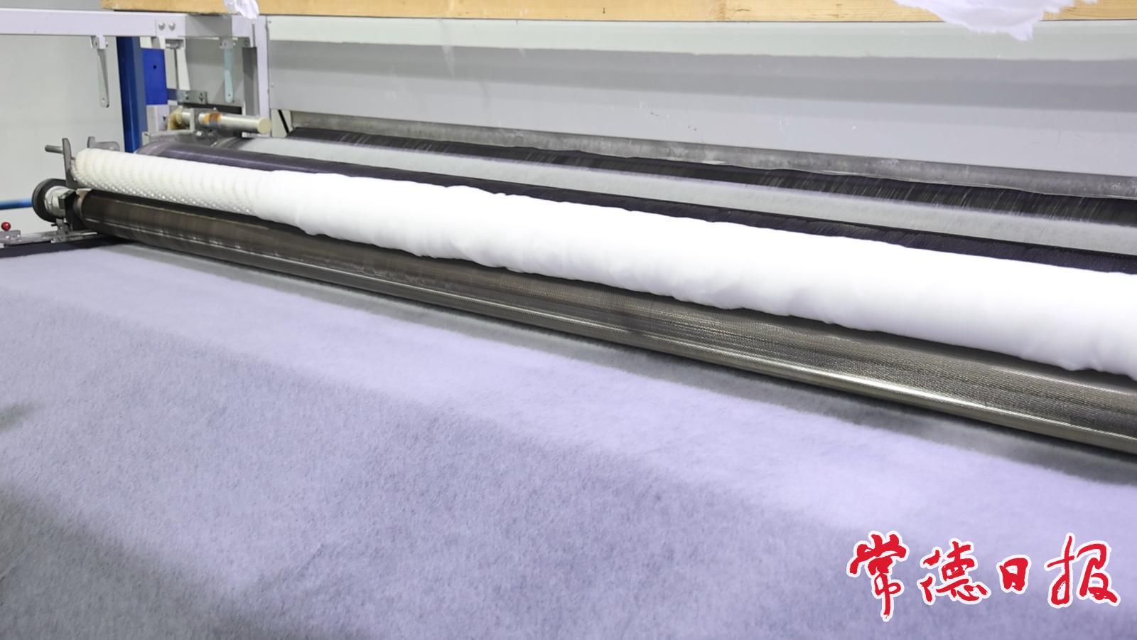 “你看,这个是刚做出来的全天丝水刺无纺布,布面均匀、纹路清晰,肉眼可见的漂亮!”徐小冯拿出一张样品,举在灯光下对记者说。