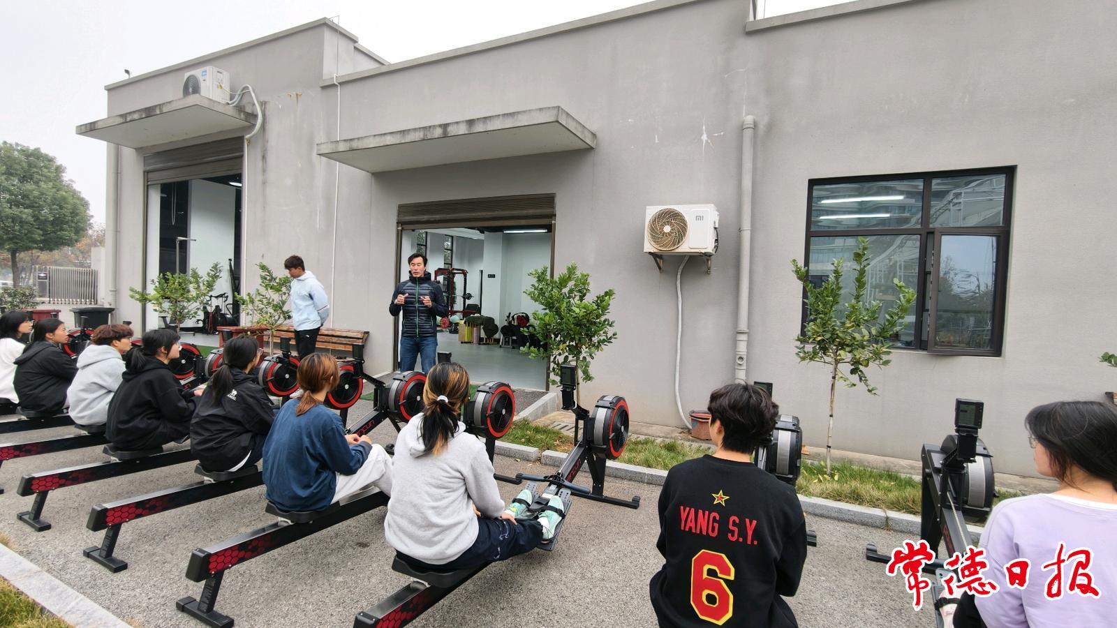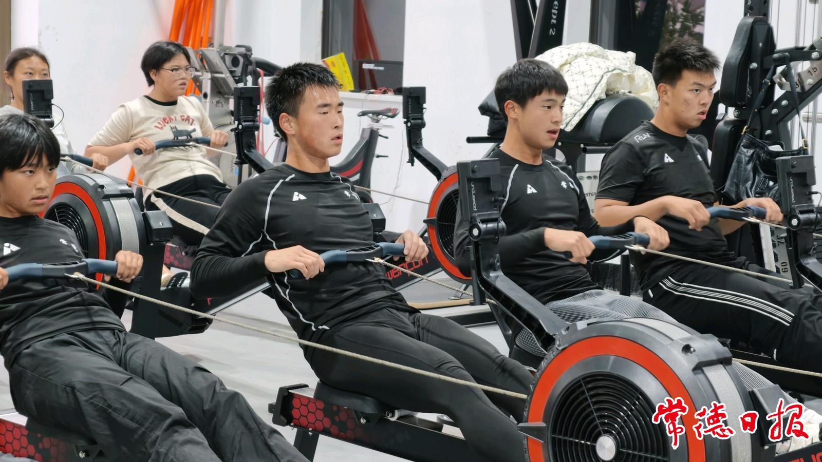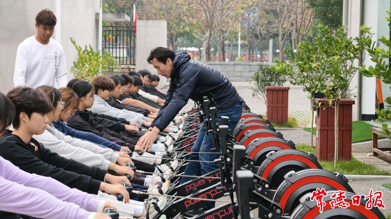 “在开始划船前,要正确建立初始姿势,调节好脚蹬板的高度,绑带于脚掌最宽处齐平,双手握桨与肩同宽……”测功仪环节,张亮依次对学生进行指导,针对他们存在的问题进行个性化纠正。