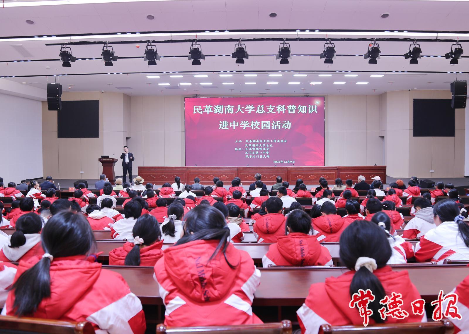 “同心科普·启智未来”进校园活动在石门一中举行。湖南大学三位专家学者为400多名学生作了前沿科普报告,以生动语言和鲜活案例激发学子科学兴趣,鼓励他们树立科技报国志向。