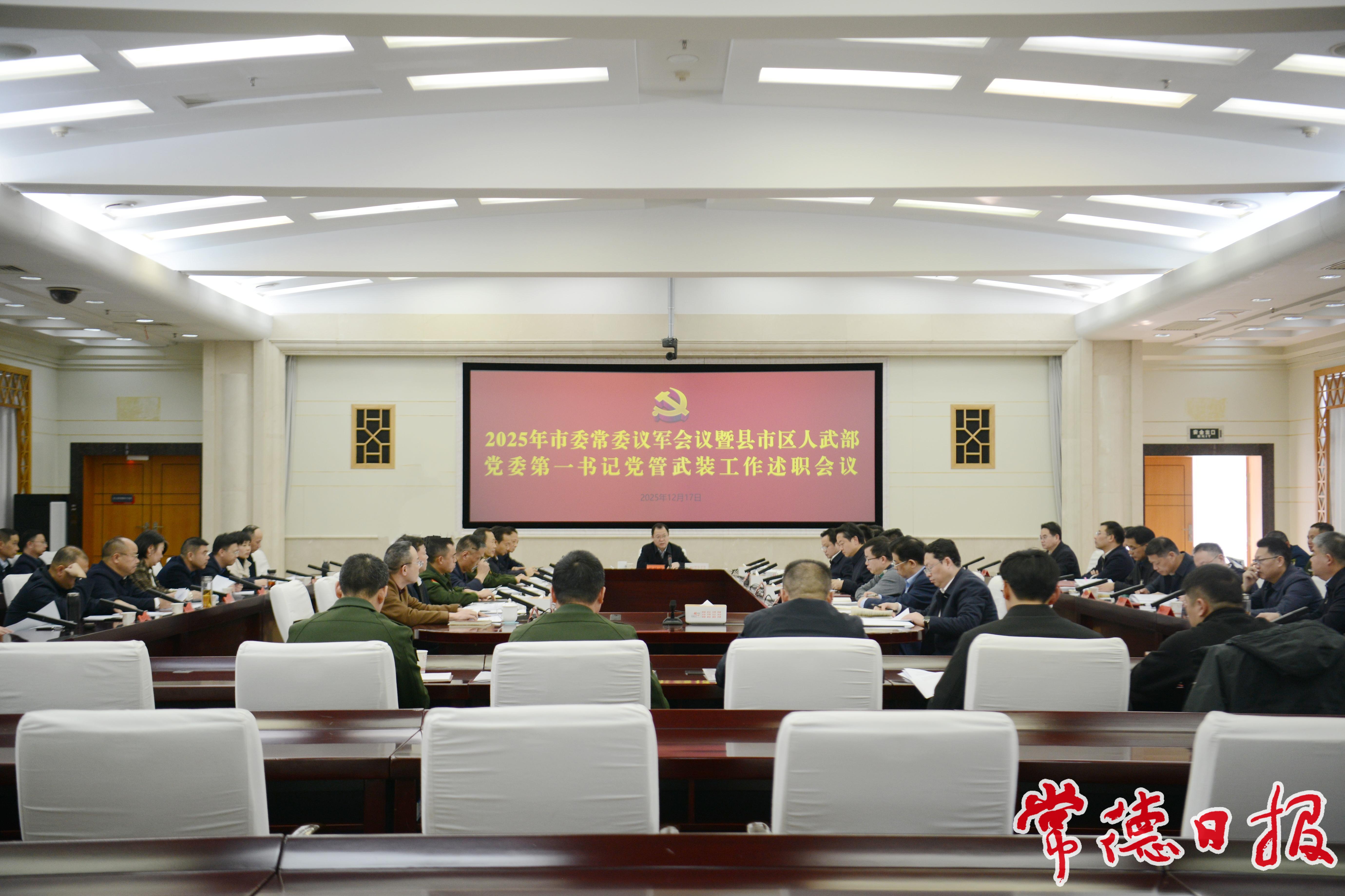 常德日报记者 罗希 通讯员 廖志勇 文/图 12月17日,受市委书记、常德军分区党委第一书记罗毅君委托,市委副书记、市长、市国动委主任周振宇主持召开2025年市委常委议军会议暨县市区人武部党委第一书记党管武装工作述职会议,传达学习习近平总书记关于国防和军队建设重要论述,听取有关情况汇报和县市区党管武装工作书面述职,研究安排下阶段工作。