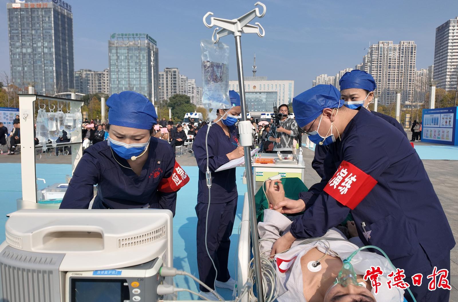 此次演练通过模拟真实突发事件场景,全面检验全市医疗卫生系统的应急响应与协同救治能力。演练中,常德市第一人民医院模拟交通事故救援,常德市第一中医医院针对密闭空间一氧化碳中毒展开处置,湘雅常德医院则演练聚集性毒蘑菇中毒事件应对。各场景重点围绕院前检伤分类、突发事件信息报告、多学科联合救治等关键环节展开,着力提升医务人员在复杂情况下的实战能力。