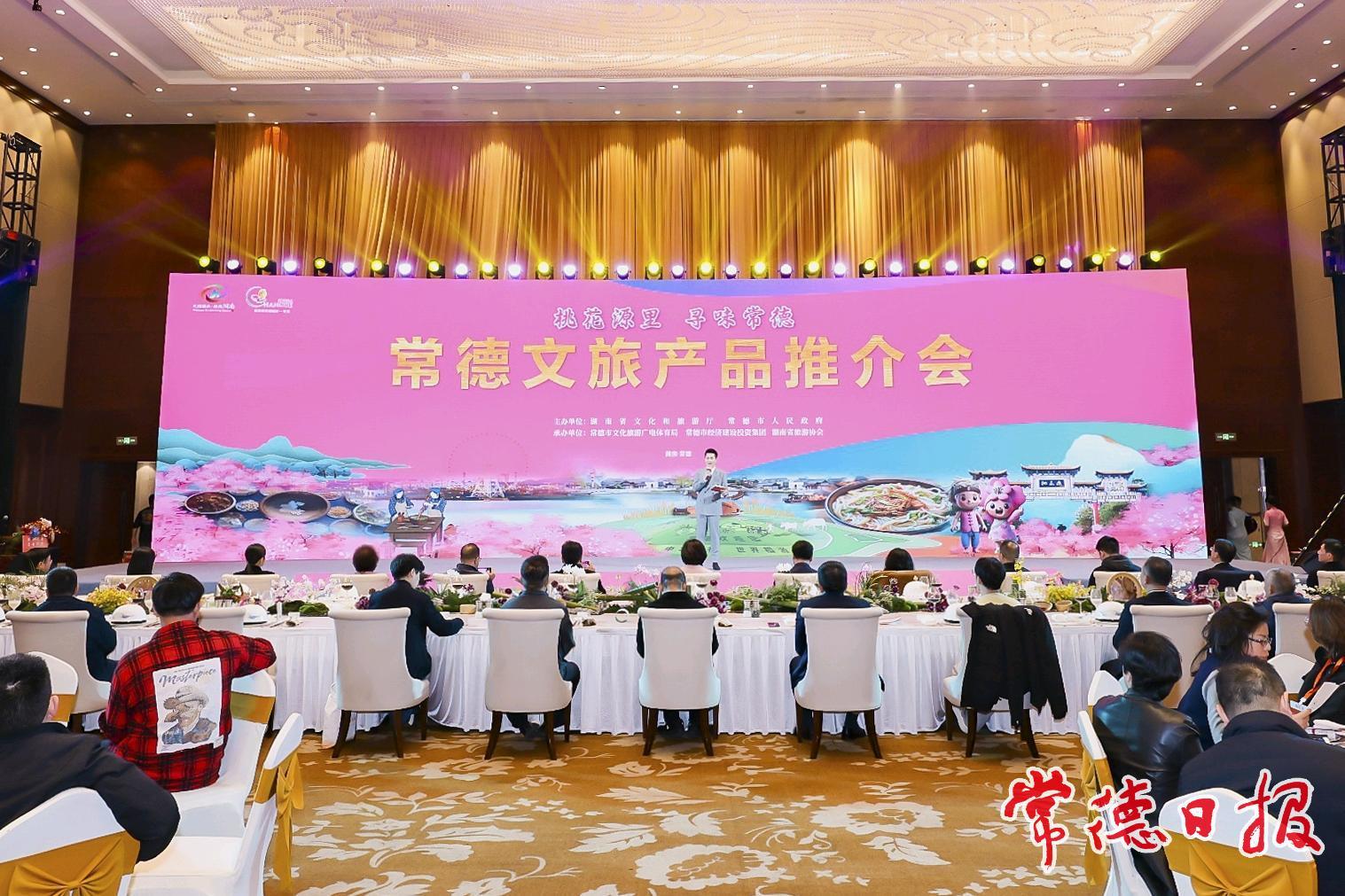 常德日报记者 裴维维 文/图 12月20日晚,由湖南省文化和旅游厅、常德市人民政府主办的“桃花源里寻味常德”常德文旅产品推介会举行。中国旅游研究院院长、文化和旅游部数据中心主任戴斌,山西省文化和旅游厅党组成员、副厅长张志仁,湖南省文化和旅游厅党组成员、副厅长龚铁军出席,常德市人民政府副市长陈华致辞。