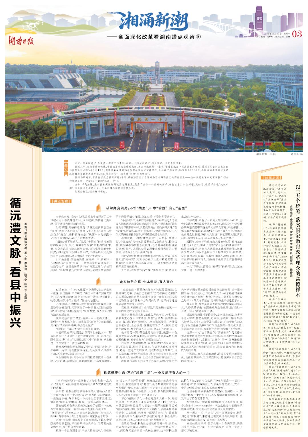常德的教育改革能在全省立标打样,关键在于把破“唯分数论”的大理念转化为具体制度,把“优质均衡”的高标准转化为“一校一策”的施工图,把“分类发展”的远目标转化为“特色共同体”的近场景,奋力在高质量发展赛道上跑出属于每一所学校的风采。