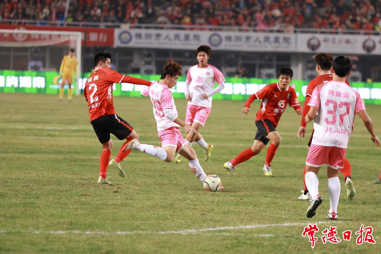 前夜,永州队以过大年般的狂喜,在点球大战中以9∶8战胜强劲的长沙队,率先挺进“湘超”决赛。那一刻,“常德和永州会师长沙”的猜想便刷满了湖南球迷的社交圈。悬念只维持了短短一日。冬至夜,答案在又一幕惊心动魄的点球决战中揭晓。
