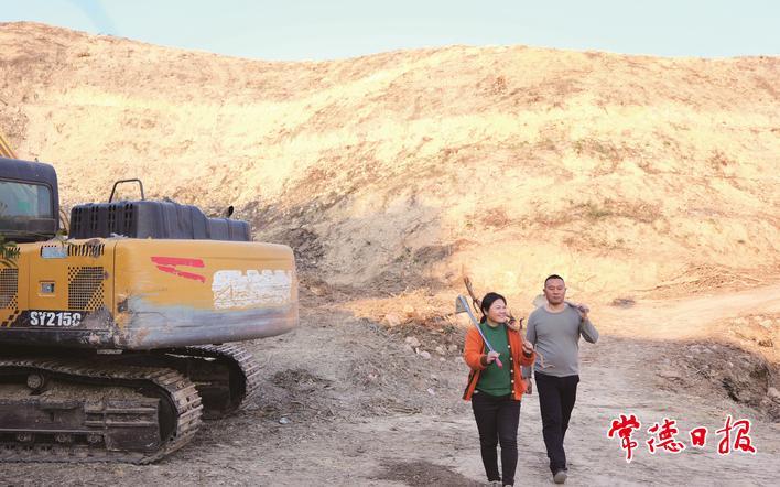 在山的另一边,数台挖掘机、卡车的轰鸣声与群众的欢呼声交织在一起,村里正加紧推进利用荒山开发的500亩油茶林种植项目,而今年上半年被山洪冲毁的两座水坝修复工程也在紧锣密鼓地施工中。