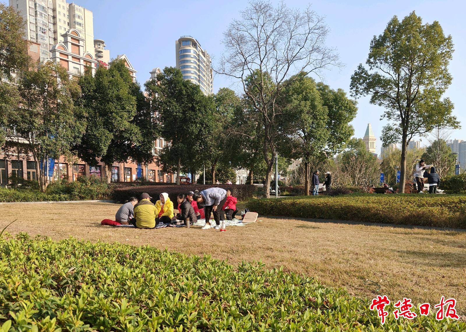 岁末已至,连绵阴雨退场,澄澈暖阳洒满常德河街西街。石板路上光影斑驳,河畔的风也裹着温柔。市民或倚着栏杆闲话家常,或坐在长椅上静享时光。孩童追逐嬉戏,轮椅上的老人们背对着太阳满脸惬意。步道上老友相携漫步,“毛孩子”是最好的伙伴。孩童在暖阳里最不舍得的是零嘴。奔波的骑手也停下脚步,在草地上晒晒太阳歇歇脚。这人间烟火的美好,就藏在冬日的一缕阳光里。