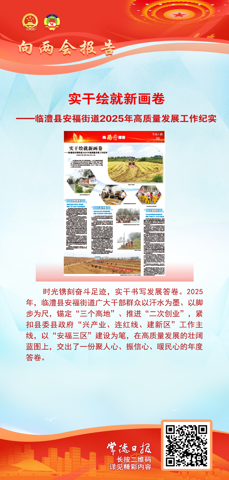 征程万里风正劲,重任千钧再出发。2025年,安福街道在“三区”建设的道路上迈出了坚实步伐、取得了显著成效。2026年,安福街道将紧扣“十五五”发展规划,秉持夺旗领跑之志、鼓足攻坚克难之劲、拿出实干争先之效,以更加昂扬的斗志、更加务实的作风、更加有力的举措,真抓实干、砥砺前行,为建设社会主义现代化新临澧贡献安福力量!