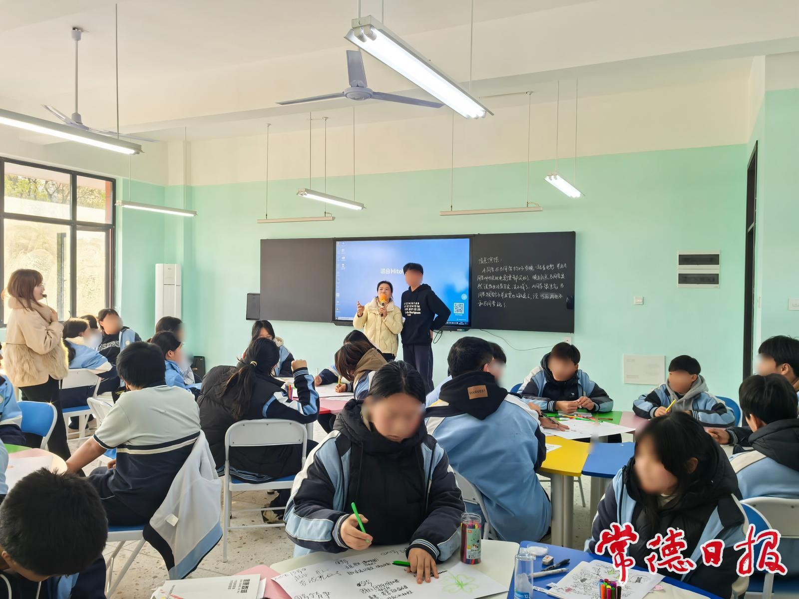 常德日报记者 杨荣国 通讯员 毛娅敏 陈泓如 文/图 12月25日下午,市康复医院未成年人心理健康辅导中心心理咨询师杨艳丽、戴芳华受邀来到西湖管理区第一中学,为九年级学生带来一场别开生面的以情绪管理为主题的团体心理辅导活动,旨在帮助学生提升情绪认知与管理能力,培养积极心态,促进其身心健康成长。