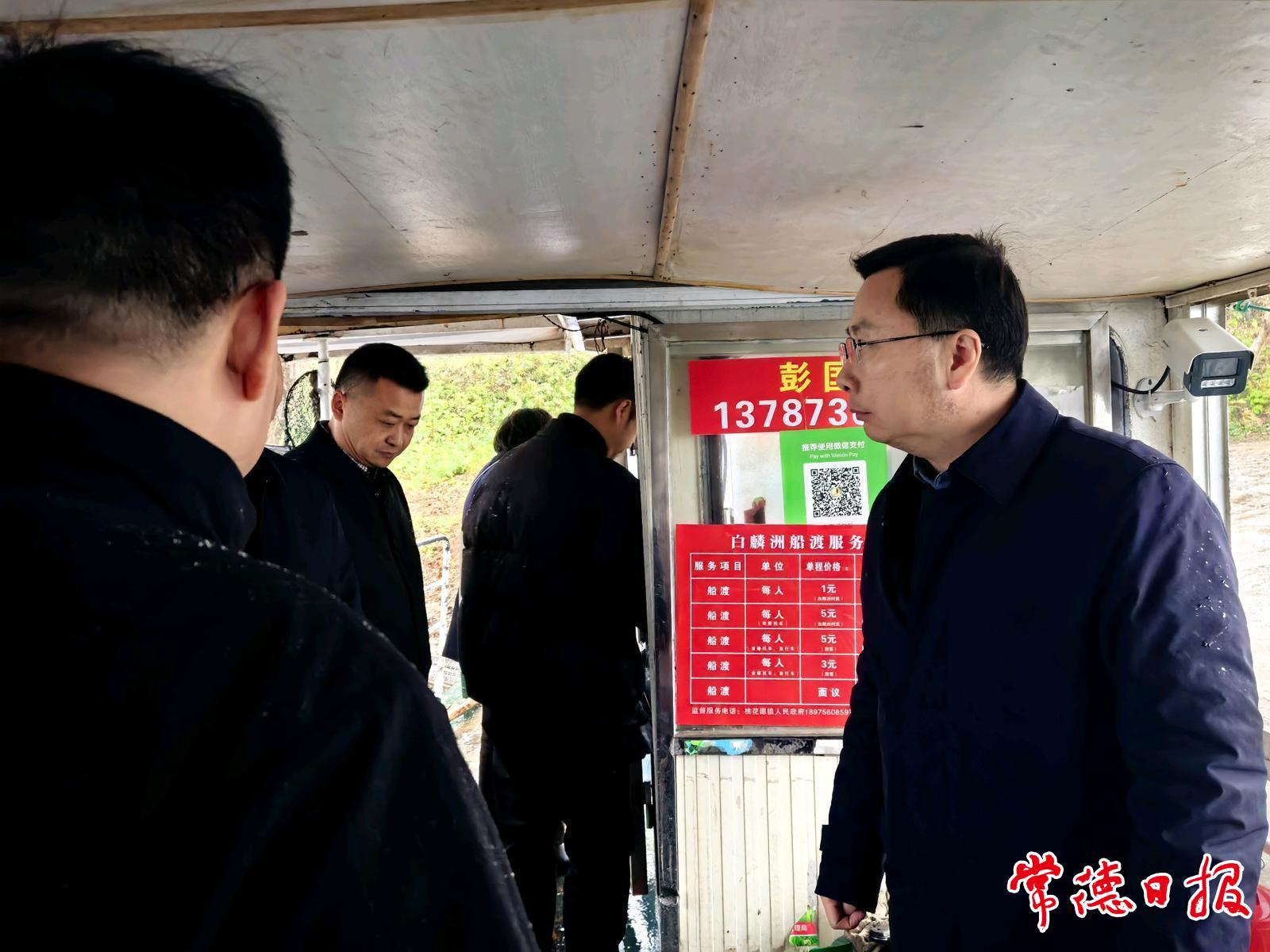 督查组一行还前往桃花源镇水溪渡口,登船查看了解其运行情况,乘客救生衣、救生圈是否规范配备等,要求渡船负责人密切关注天气变化,严格落实“六不发航”等相关规定,地方政府和主管部门密切监控,确保节日期间水上运输平安快捷。