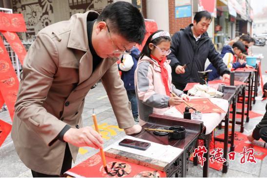常德日报记者 李龙 通讯员 谭琪臻 王玥 文/图 近日,武陵区东升小学在校门口开展了“翰墨迎新,福满校园”写春联送“福”字活动,为全校师生、家长及过往市民送上新年祝福,让传统文化在校园内外焕发生机。