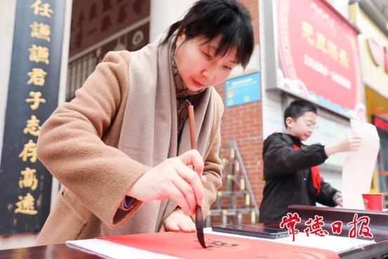 “往年都是买印刷春联,今年拿到老师和孩子们亲手写的,感觉格外有温度。”刚接孩子放学的张女士捧着墨香未干的春联,脸上洋溢着幸福笑容。活动现场,春联与“福”字供不应求,短短两小时内,师生们共书写春联300余副、“福”字500余个,每一份作品都承载着浓浓的新春祝愿。路过的市民纷纷驻足,或排队等候领取墨宝,或拍照记录温馨瞬间,现场节日氛围浓厚。